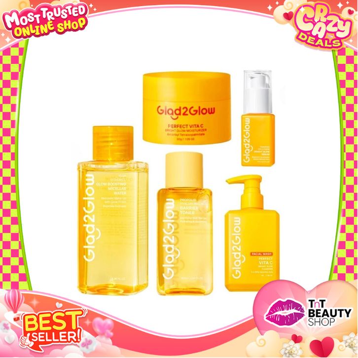Glad2glow Perfect Vita C Bright Glow Cleanser Toner Serum Moist Micellar Water G2G / OUTLET