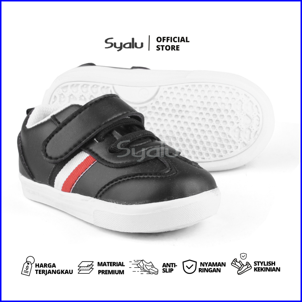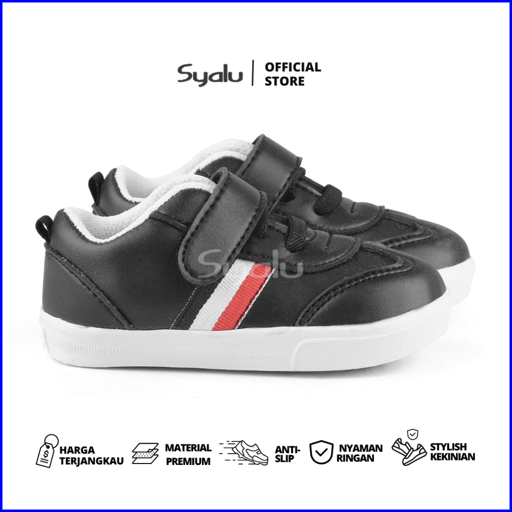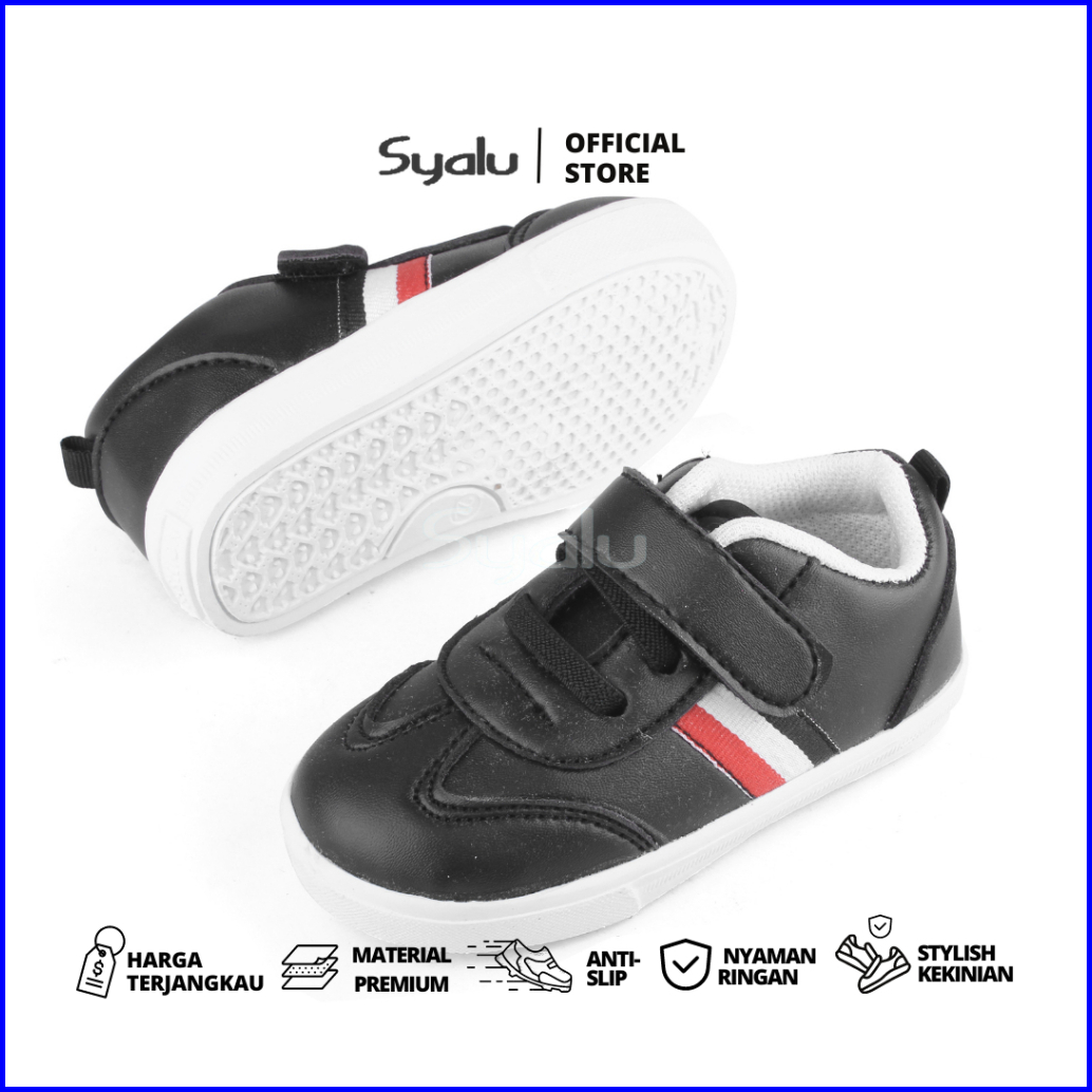 Syalu Sepatu Anak Sneakers Unisex Bahan Sintetis Hitam Pgc