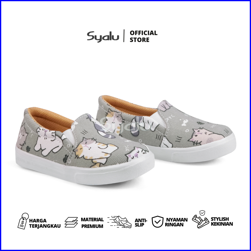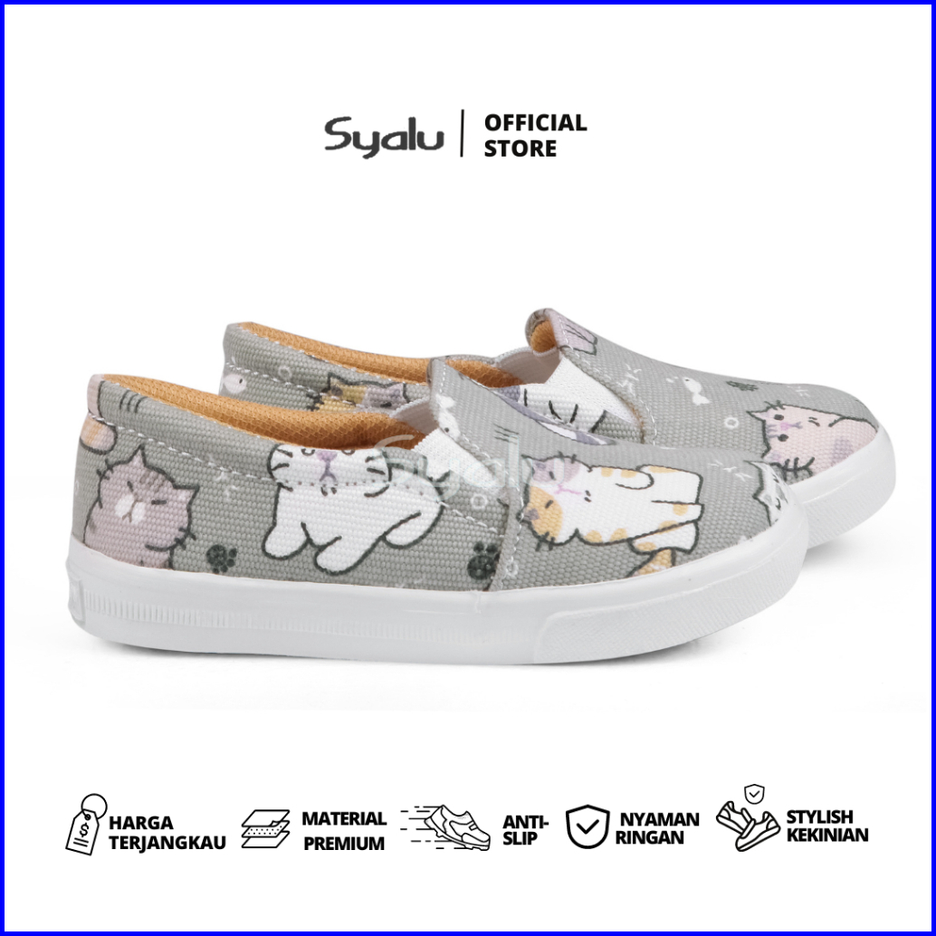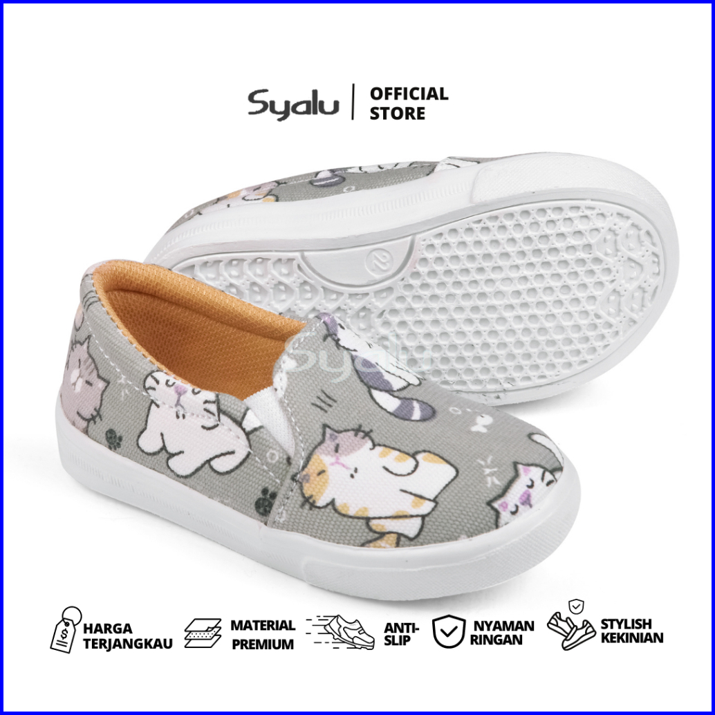 Syalu Sepatu Anak Slip On Unisex Terbaru Umur 1 2 Tahun Kanvas E01 Kucing Olive