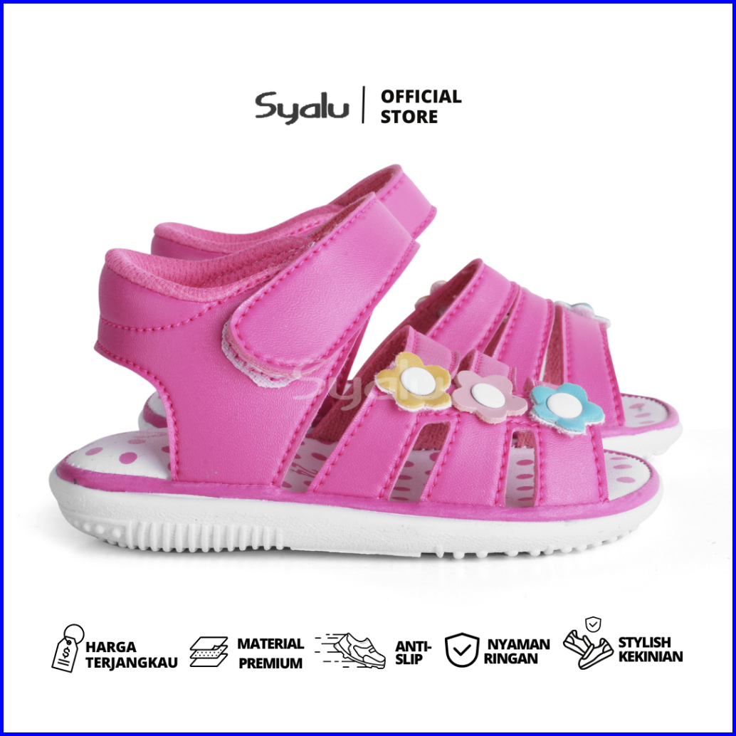Syalu Sepatu Anak Perempuan Bunyi Tiga Bunga Warna Fanta Ds03