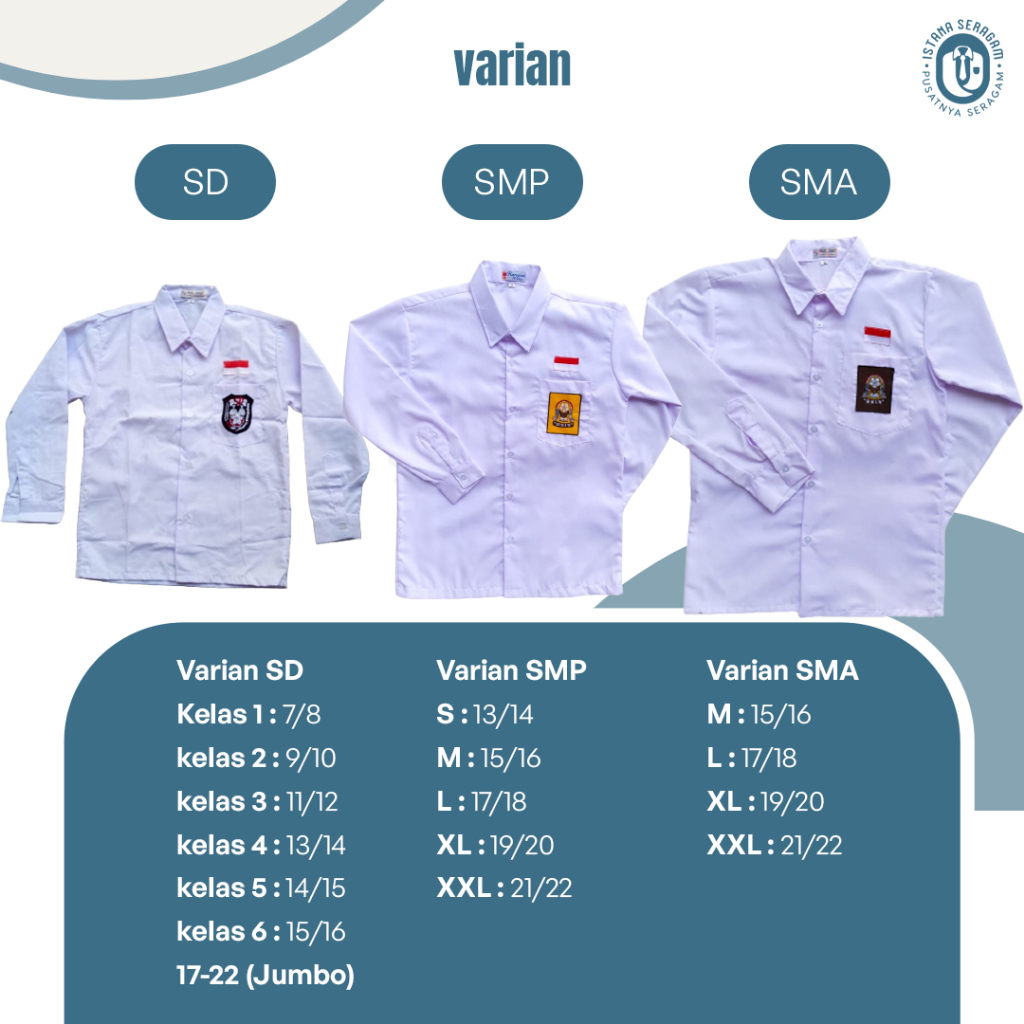 Baju Seragam Sekolah Lengan Panjang Sd Smp Sma Laki Laki Perempuan Kemeja Hem Putih Bahan Katun Oxford Adem Nyaman Ukura