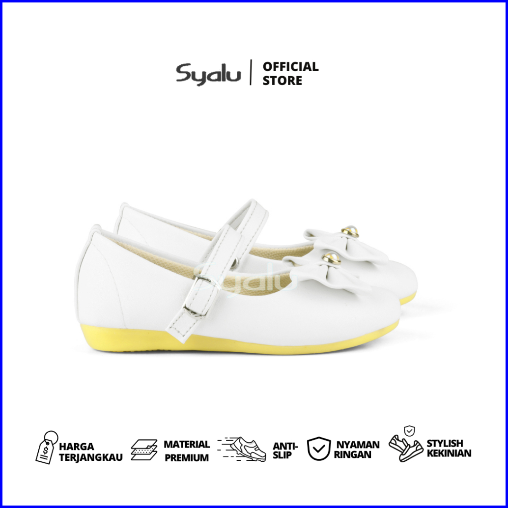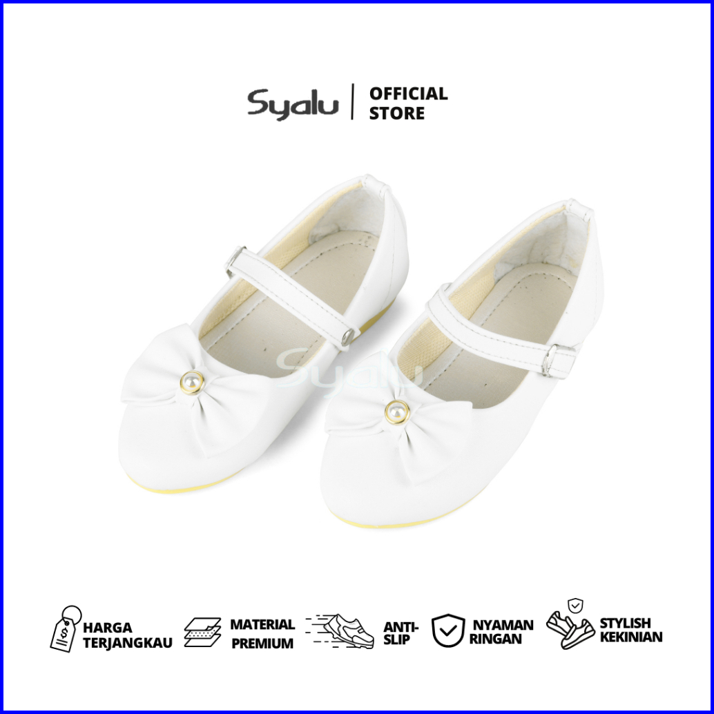 Syalu Sepatu Balet Anak Aksesoris Pita Mutiara Warna Putih Wmp