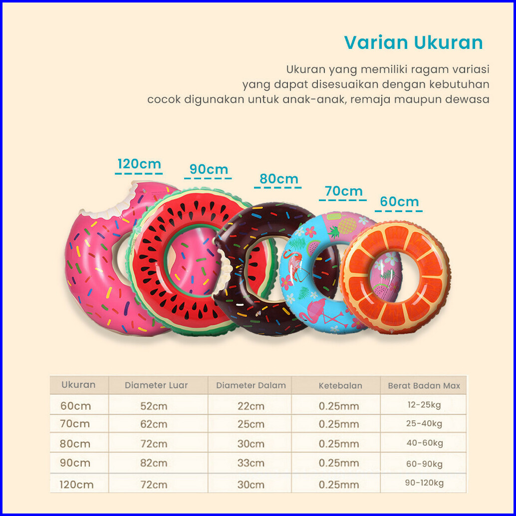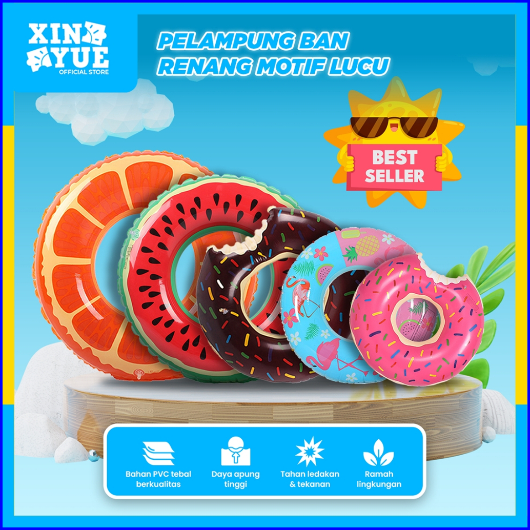 Xin Yue Pelampung Renang Anak Dewasa Ban Angin Motif Buah Hewan Semangka Flamingo Jeruk Donat