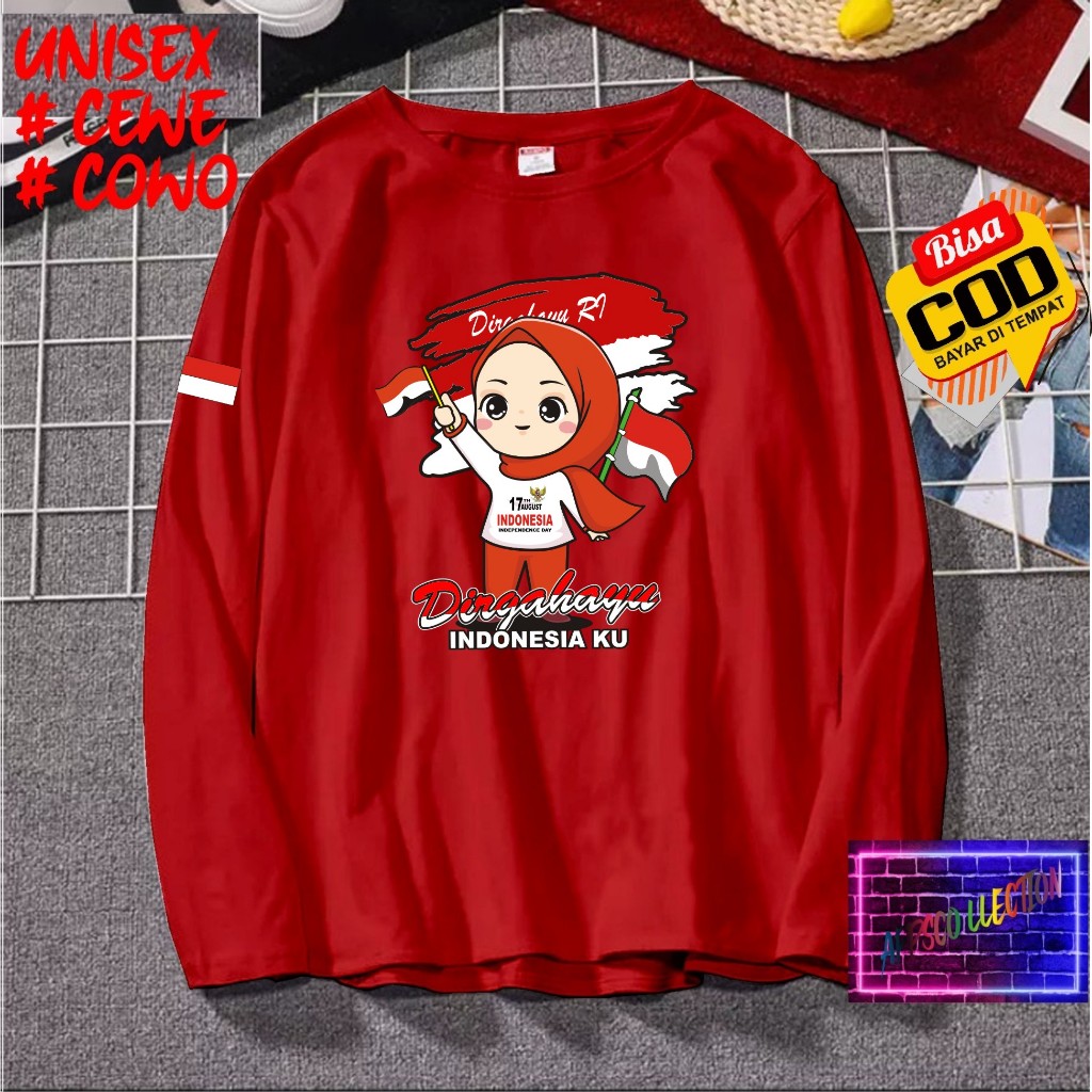 Lengan Panjang Wanita Hut Jilbab RI 80 Kaos Terlaris 17 Agustus 1945 Kemerdekaan Indonesia Kaos Merah Putih Hitam Kaos