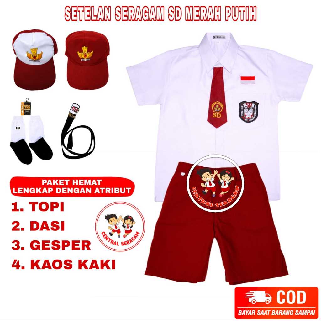 Setelan Super Lengkap Seragam Sekolah SD Laki Baju Pendek Celana Pendek Cowok Kelas 1 – 6 SD