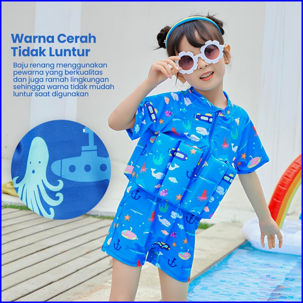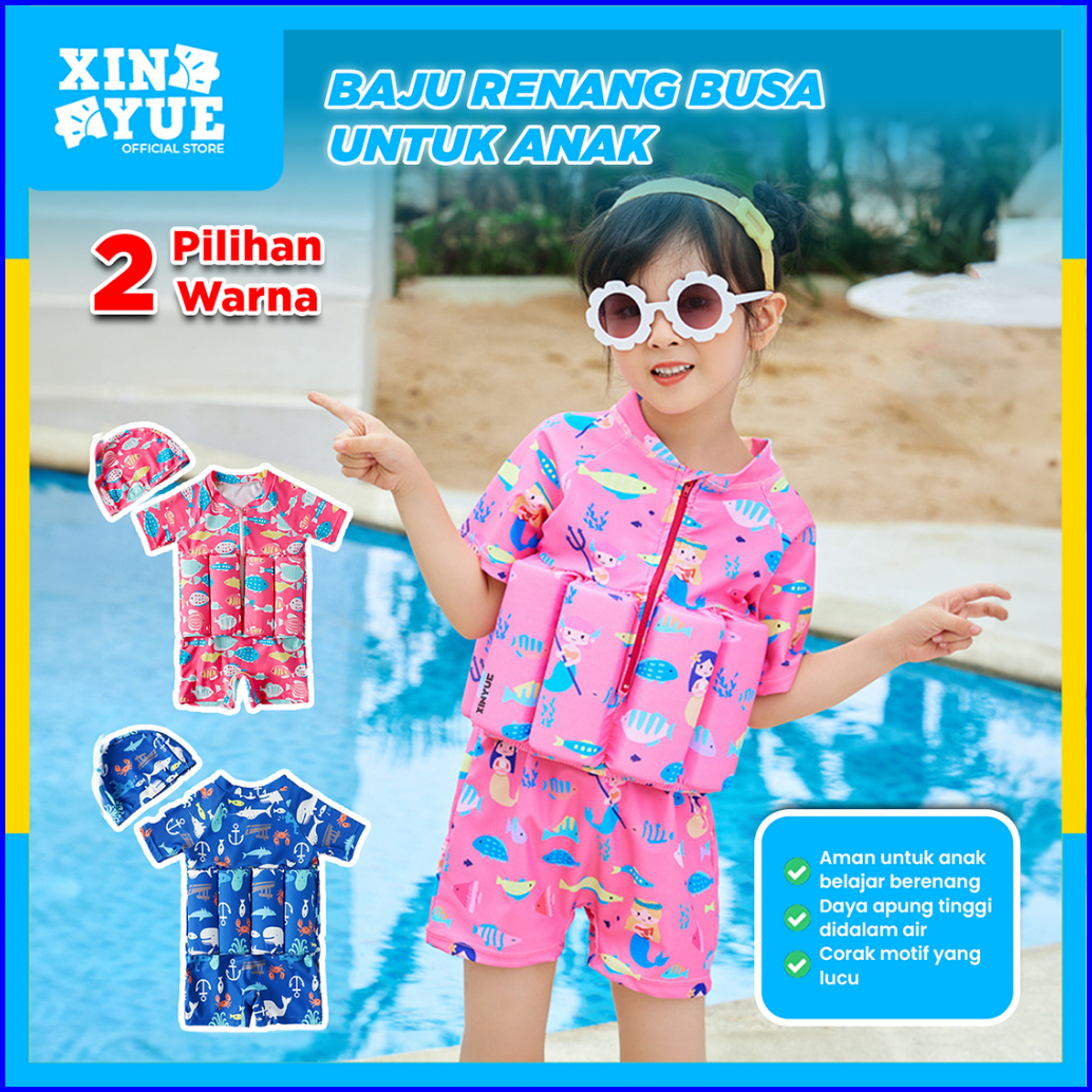 Xin Yue Baju Renang Pelampung Apung Busa Anak Perempuan Laki-laki Lengan Pendek One Piece Swimsuit