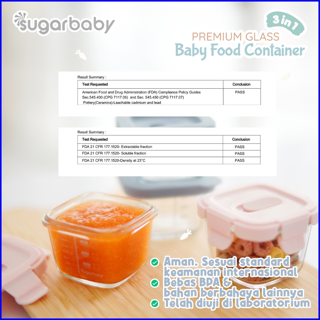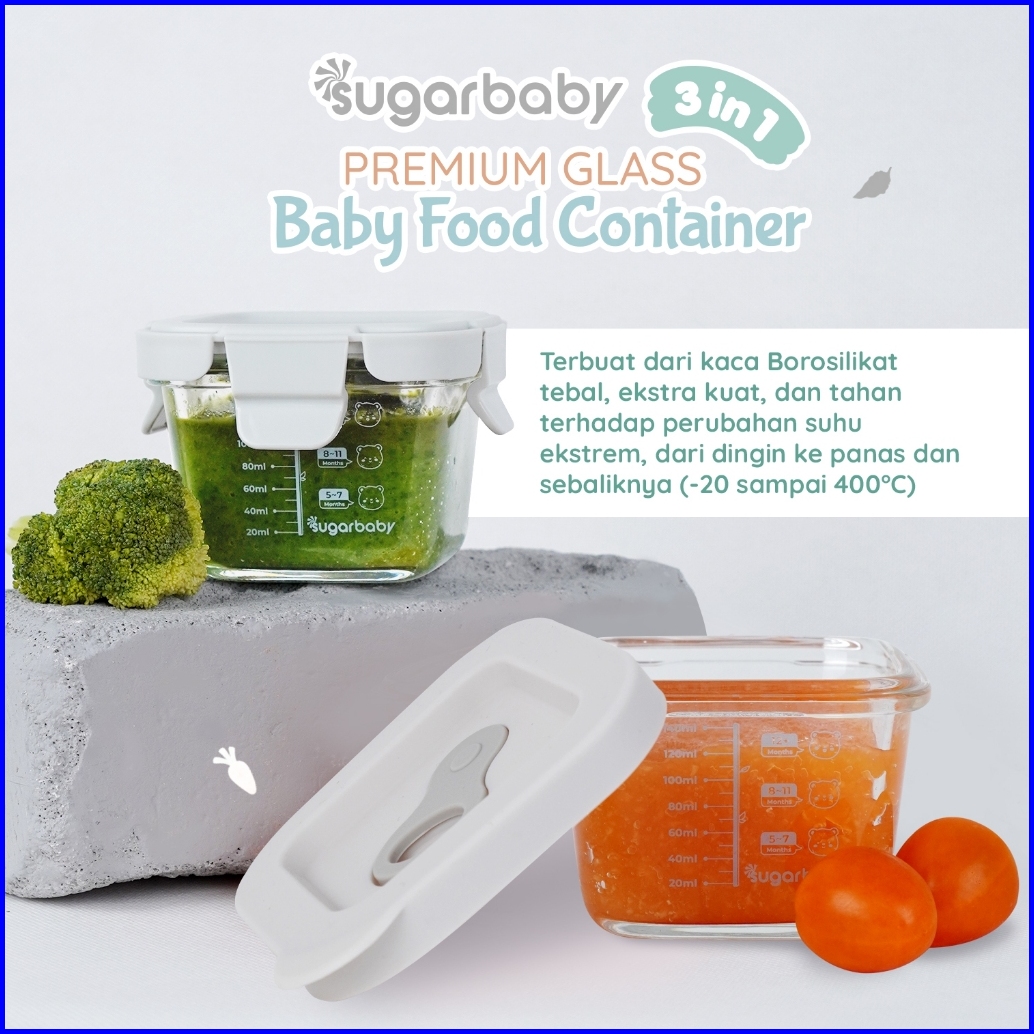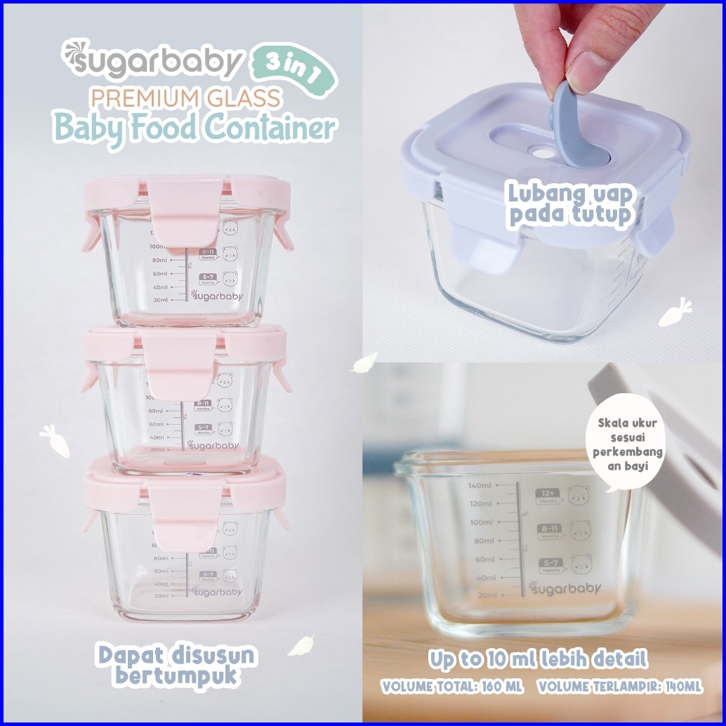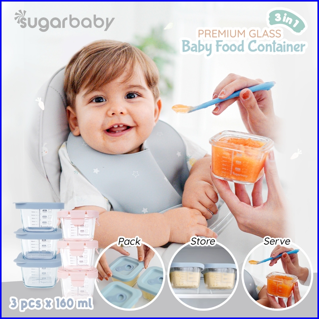 Sugarbaby Premium Glass Jar Baby Food Container 3 Pcs Bpa Free Peralatan Makan Bayi Mpasi Wadah Mangkok Bayi Silicone Li
