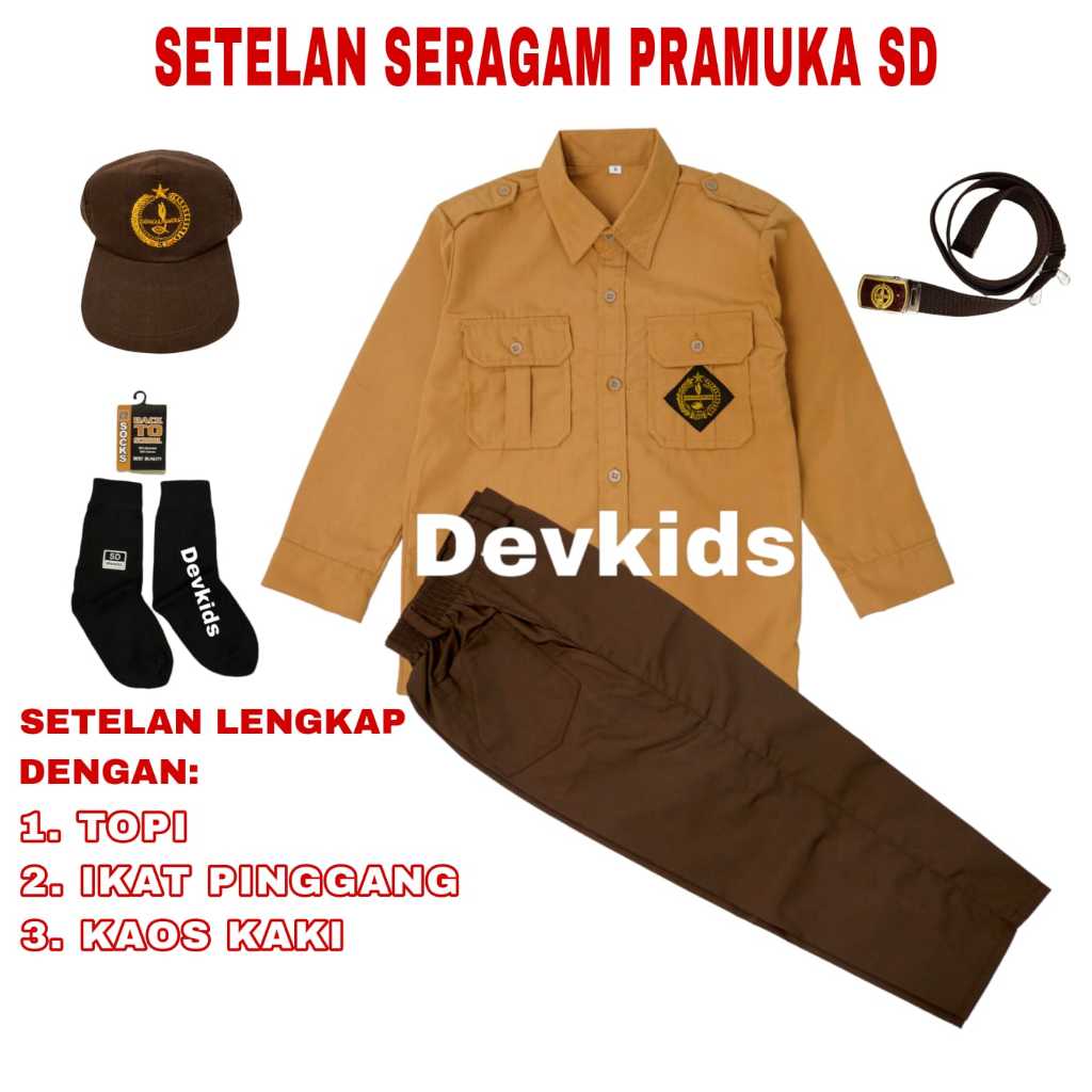 Devkids Seragam Sekolah SD Setelan Super Lengkap Pramuka Lengan Panjang Laki-laki Kelas 1-6 SD