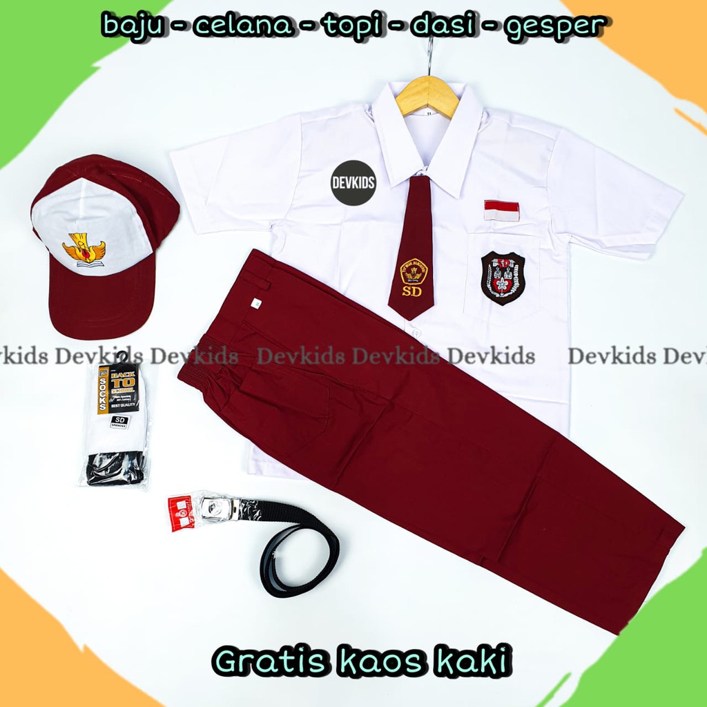 Setelan Super Lengkap Seragam Sekolah SD LAKI BAJU PENDEK CELANA PANJANG KELAS 1-6 SD