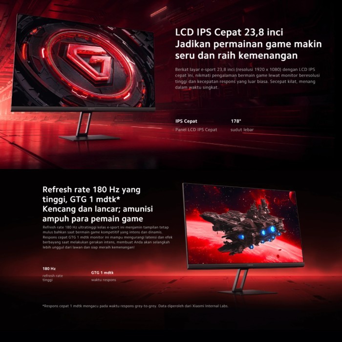 XIAOMI GAMING MONITOR G24I 1080P REFRESH RATE 180HZ 1MS FREESYNC HDR COLOUR GAMUT 99 PERSEN SRGB