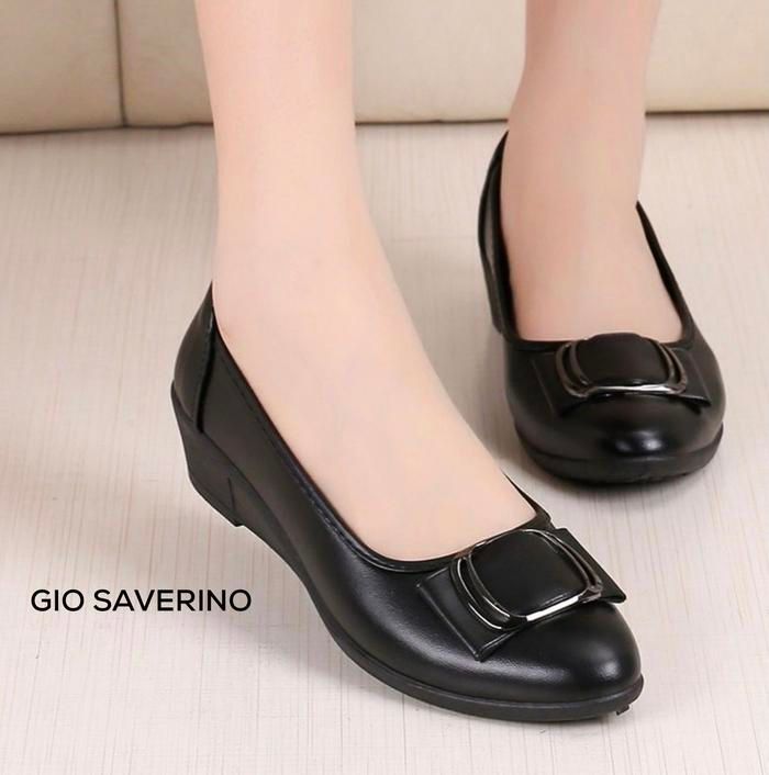 Gio Saverino Sepatu Formal Wanita Hitam Wedges Berlin Black Heels Shoes Pantofel Wanita - BLACK 35