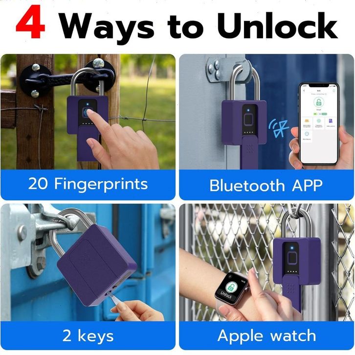 TERLARIS Gembok Sidik Jari Bold Stainless Steel Anti Pencurian Kunci Bluetooth APP iOS Watch Tahan Air Ungu ofifl
