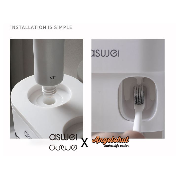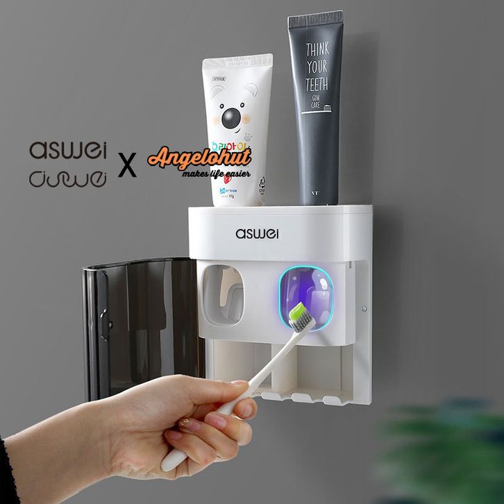 Aswei A17 Dispenser Odol dan Tempat Sikat Gigi dengan Penutup Anti Bakteri aboch