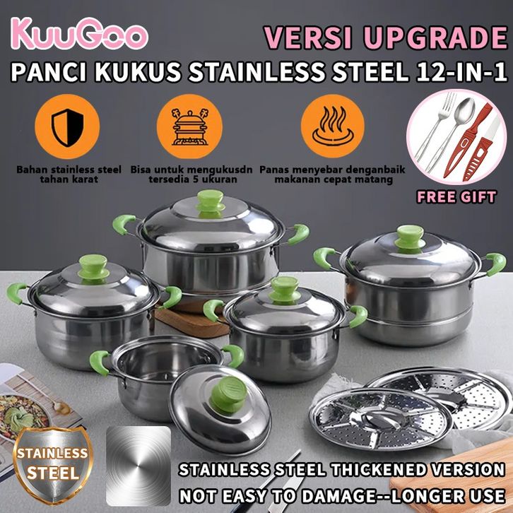 TERLAKU KUUGOO 12in1Panci Steamer StainlessSet kapal uap baja tahan karat 2-in-1 Tersedia Ukuran 16,18,20,22,24