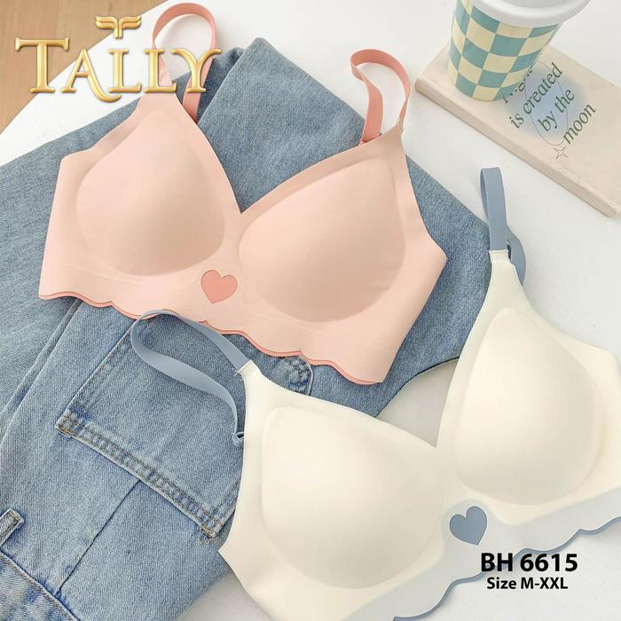 TALLY BH 6615 Bra Wanita Tanpa Kawat Busa Tipis Bahan Seamless Cup B Kait 2 Bra Kemben Motif Pakaian