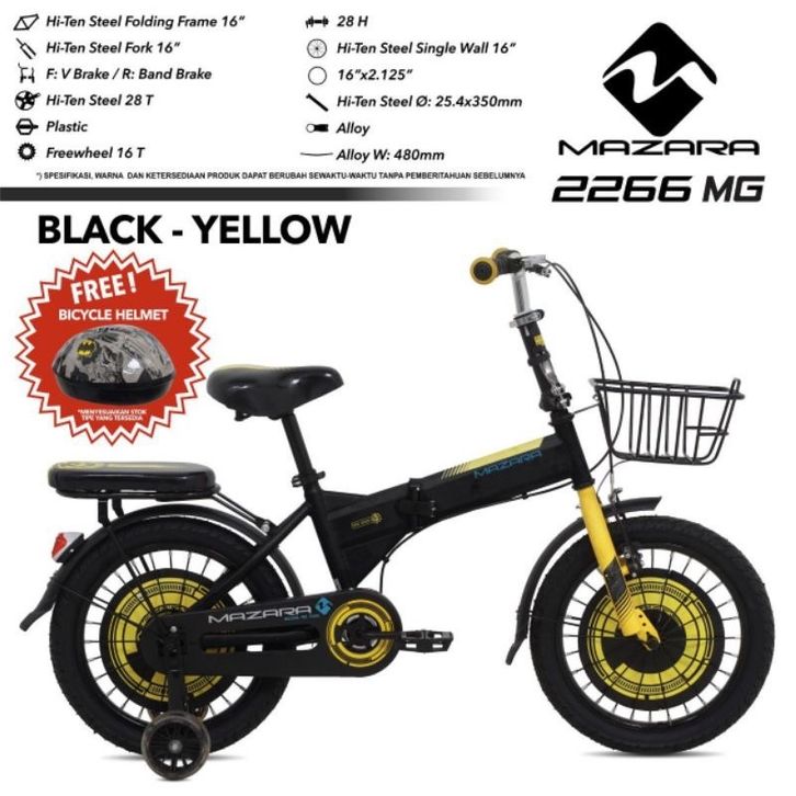 Sepeda Lipat Anak MAZARA 2266 MG Ukuran 16 & 18Inch Keranjang Boncengan Roda samping Free Helm