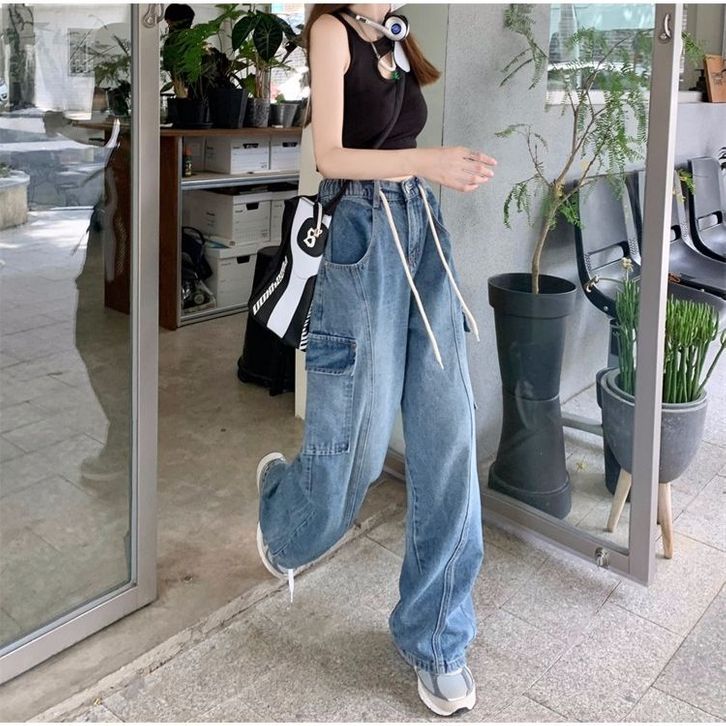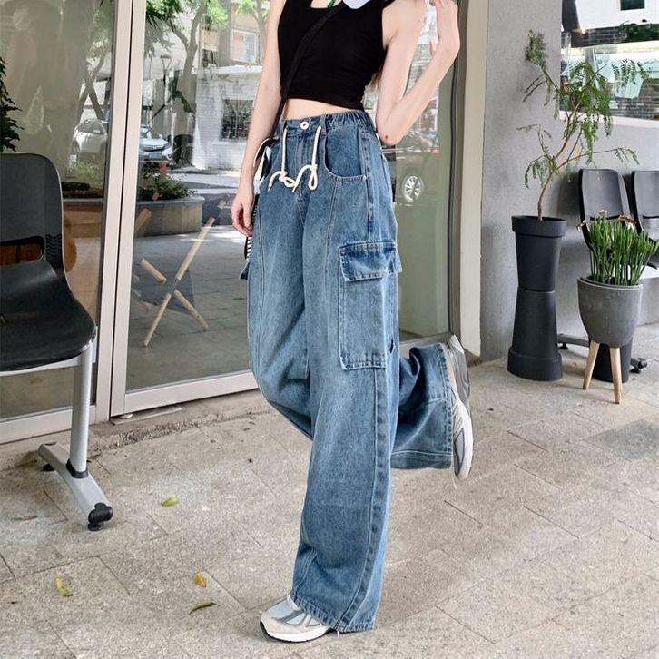 Celana Kerja Jeans Wanita Dengan Tali Serut Dan Banyak Kantong
