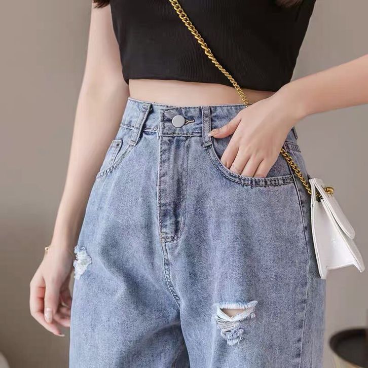 Celana Jeans Panjang Wanita Highwaist Motif Sobek Ripped Jeans Gaya Korea Boyfriend Jeans Ripped
