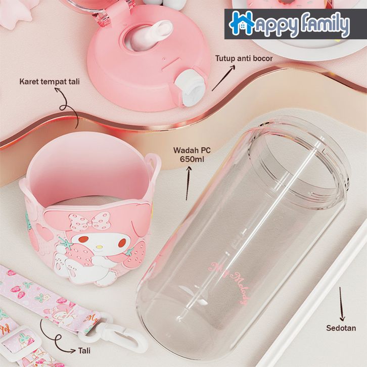 botol minum anak Botol Minum Anak 650ml Karakter Sanrio Melody Cinamonroll KUROMI FREE Stiker 3D Praktis