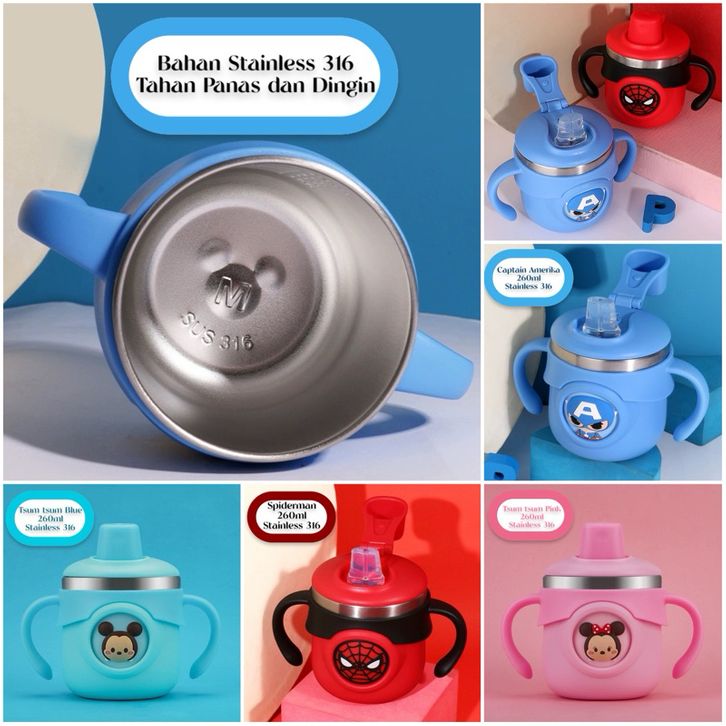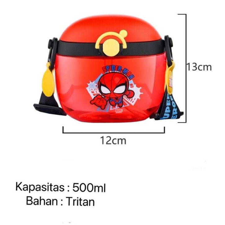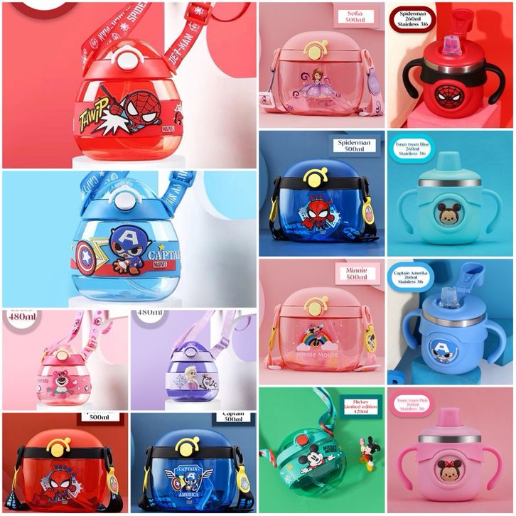 botol minum anak Botol Minum Anak Motif Lucu M0DEel Sedot 500ml Tritan Karakter Marvel Disney Spiderman Lotso Elsa Mick
