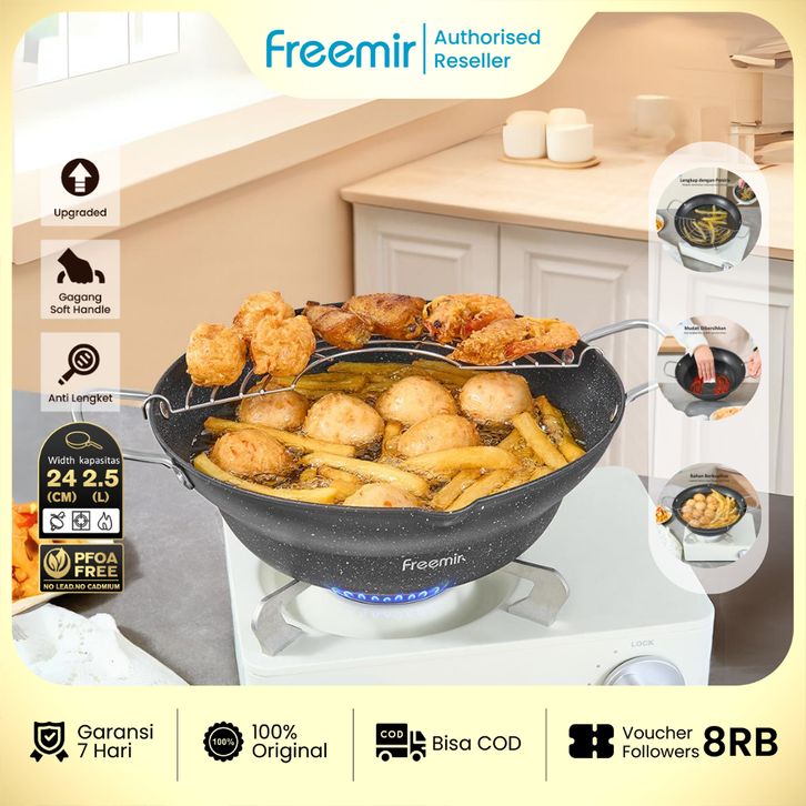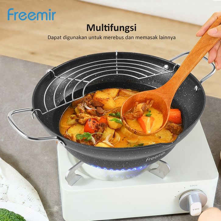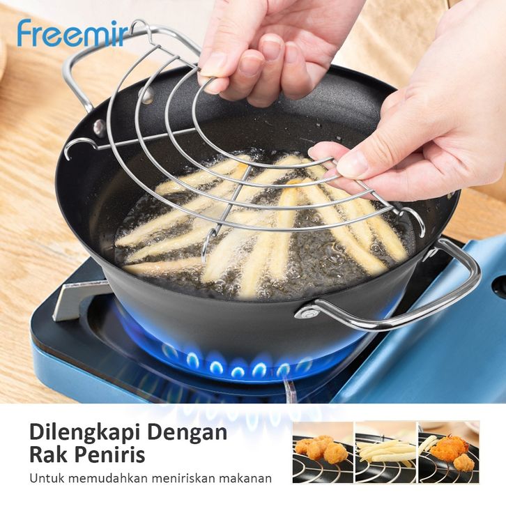 SPECIAL freemir Wajan Penggorengan 3in1 13/16/20/24 Cm Deep Fryer Anti Lengket dengan Peniris