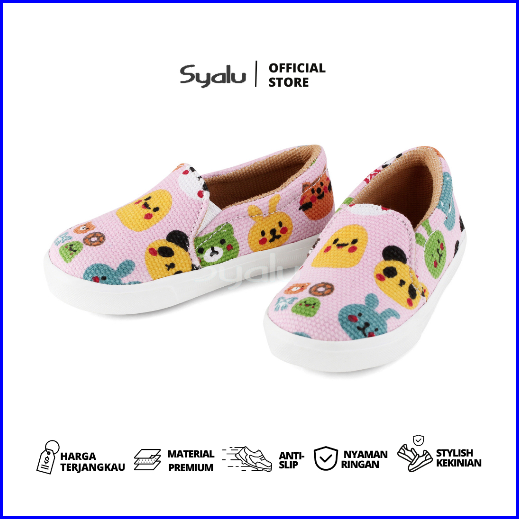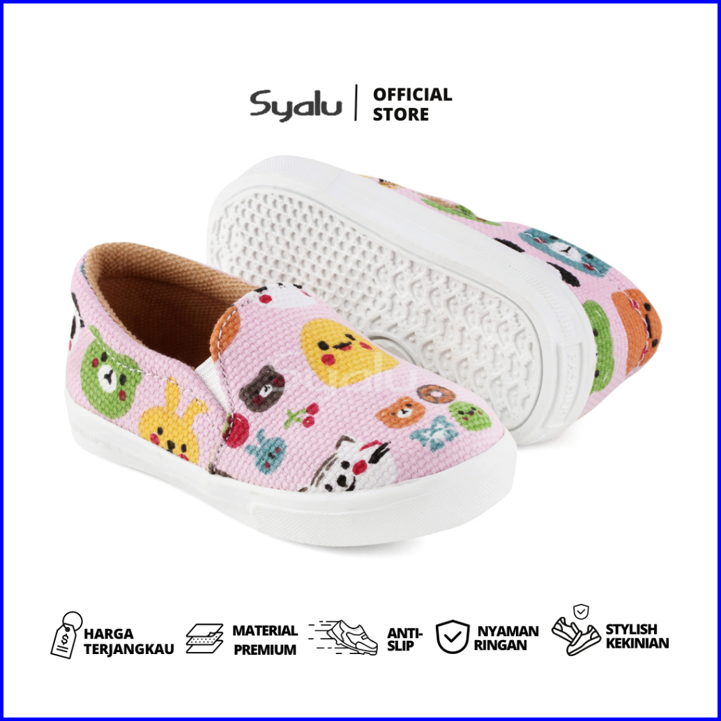 Syalu Sepatu Anak Perempuan Bahan Canvas Motif Kartun E01 Cemen