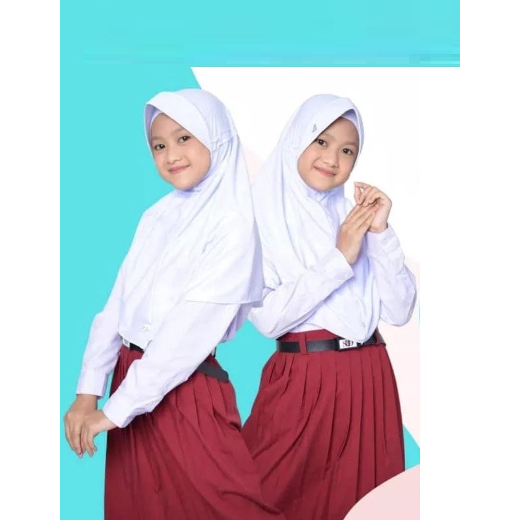 Paket lengkap setelan seragam sekolah SD merah putih perempuan lengan panjang rok merah panjang 1-6 SD
