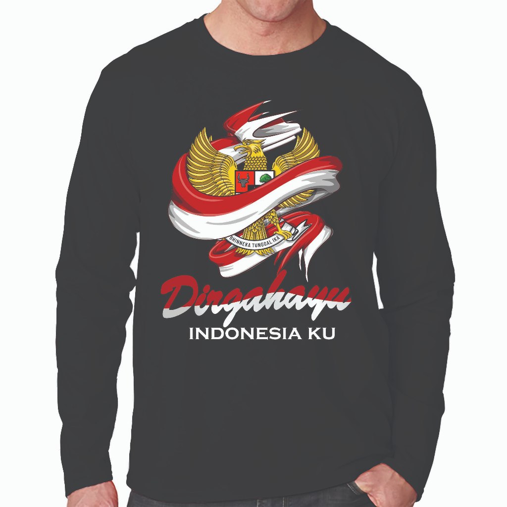 KAOS Distro Pria Lengan Panjang / KAOS Dirgahayu 17 Agustus / KAOS Jumbo / DIRGAHAYU Indonesia Ku