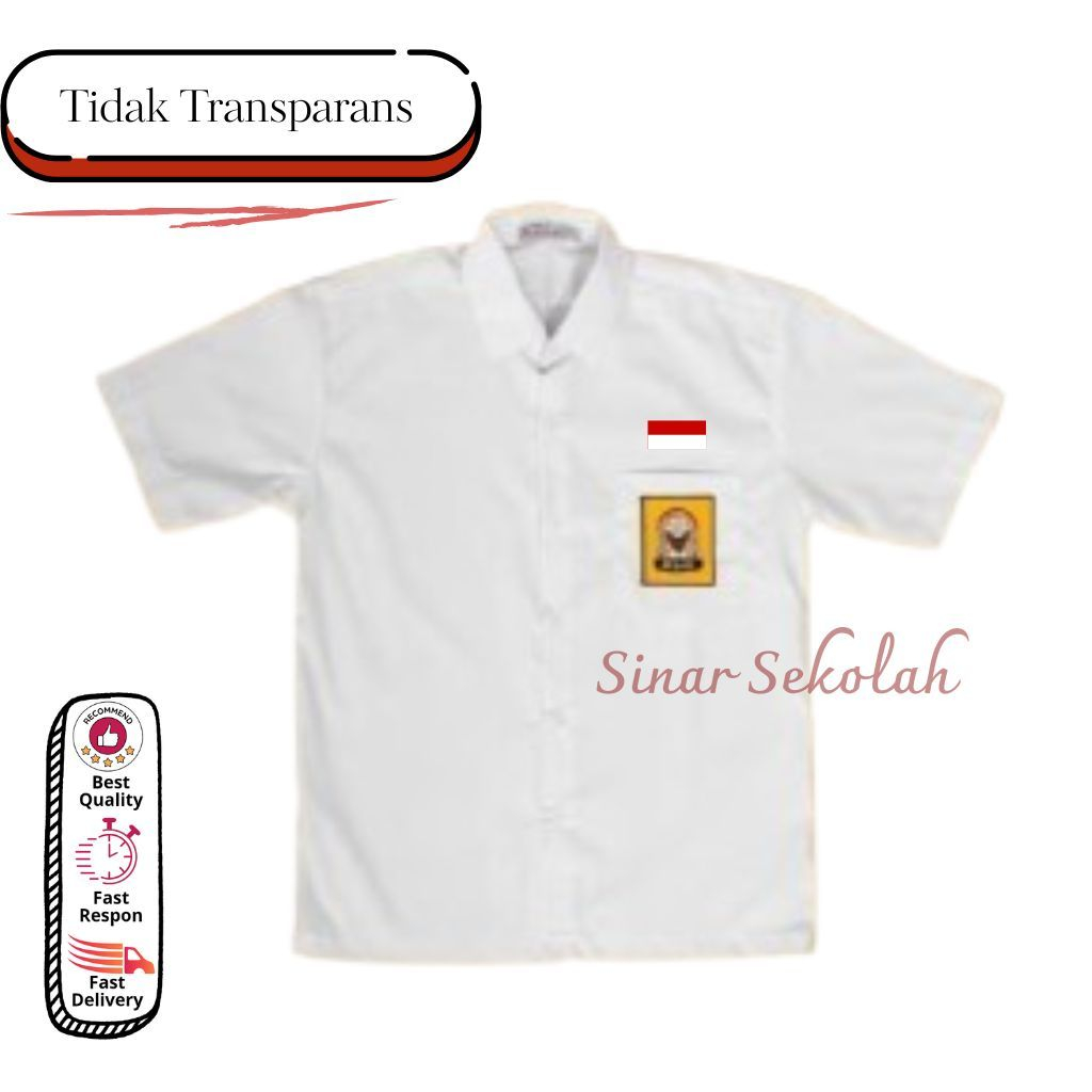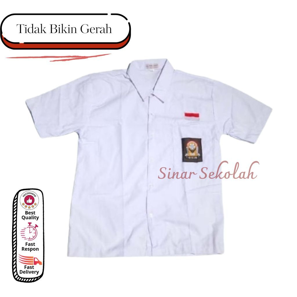 Seragam Sekolah SD SMP SMA Kemeja Putih Baju Atasan Lengan Pendek Bet Bordir Kain Oxford