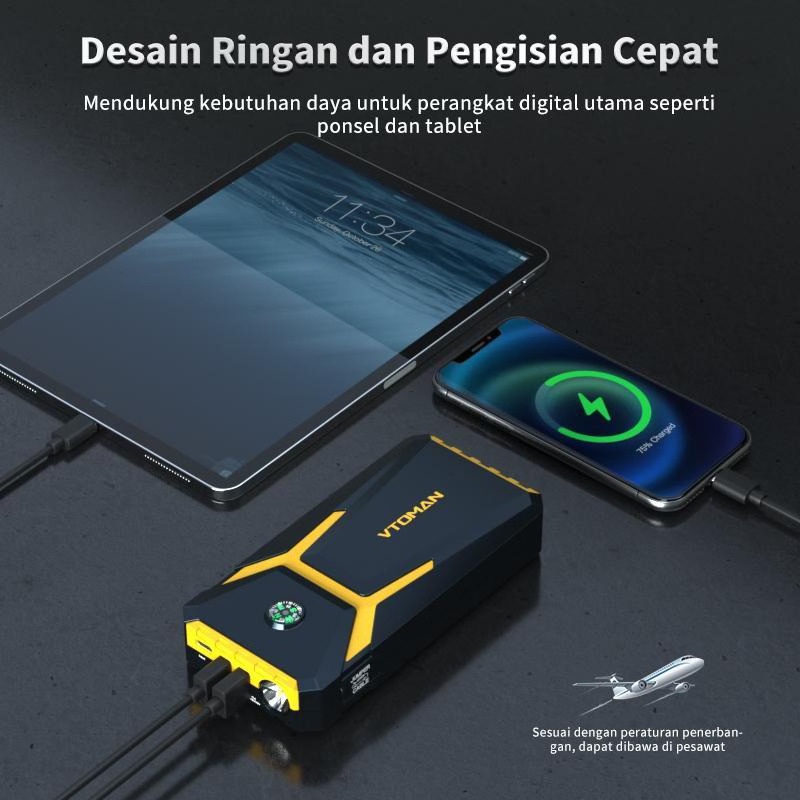VTOMAN V6 PRO 10000 mAh Jump Starter Aki Mobil Motor Power Bank Jumper Aki Alat Jamper Aki Power Bank Mobil Jemper Aki P