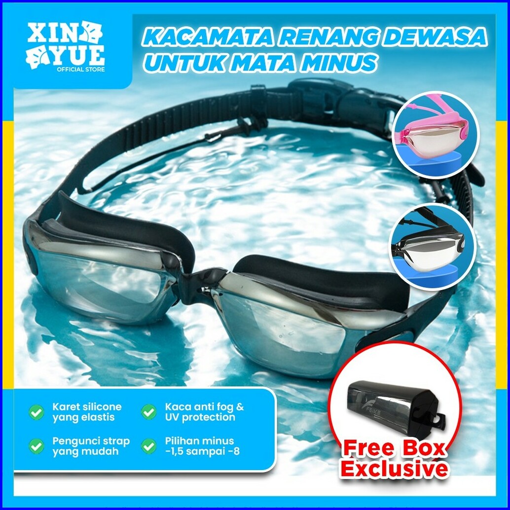Xin Yue Kacamata Renang Dewasa Lensa Minus Sillicon Anti Fog Embun Uv Protection Penutup Telinga
