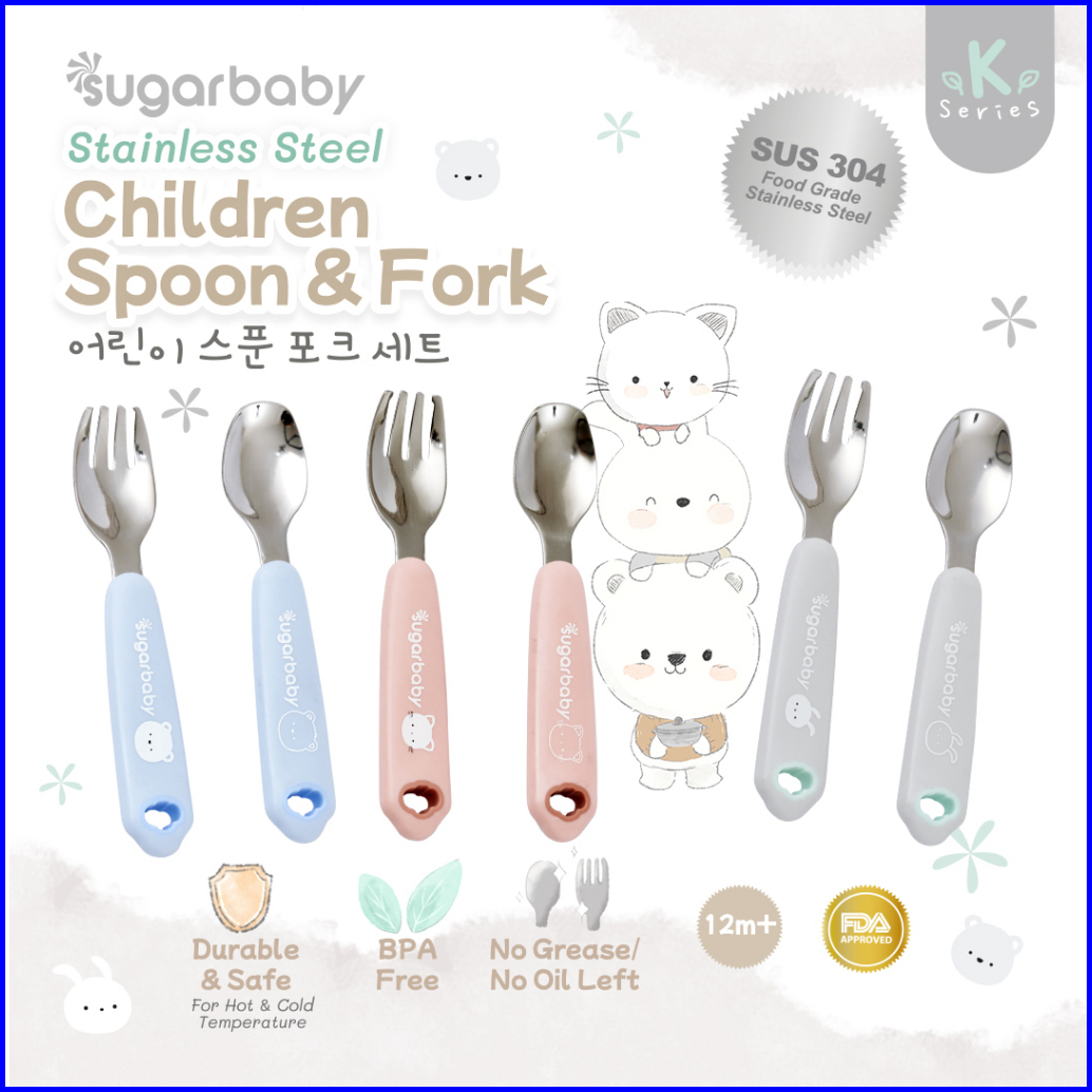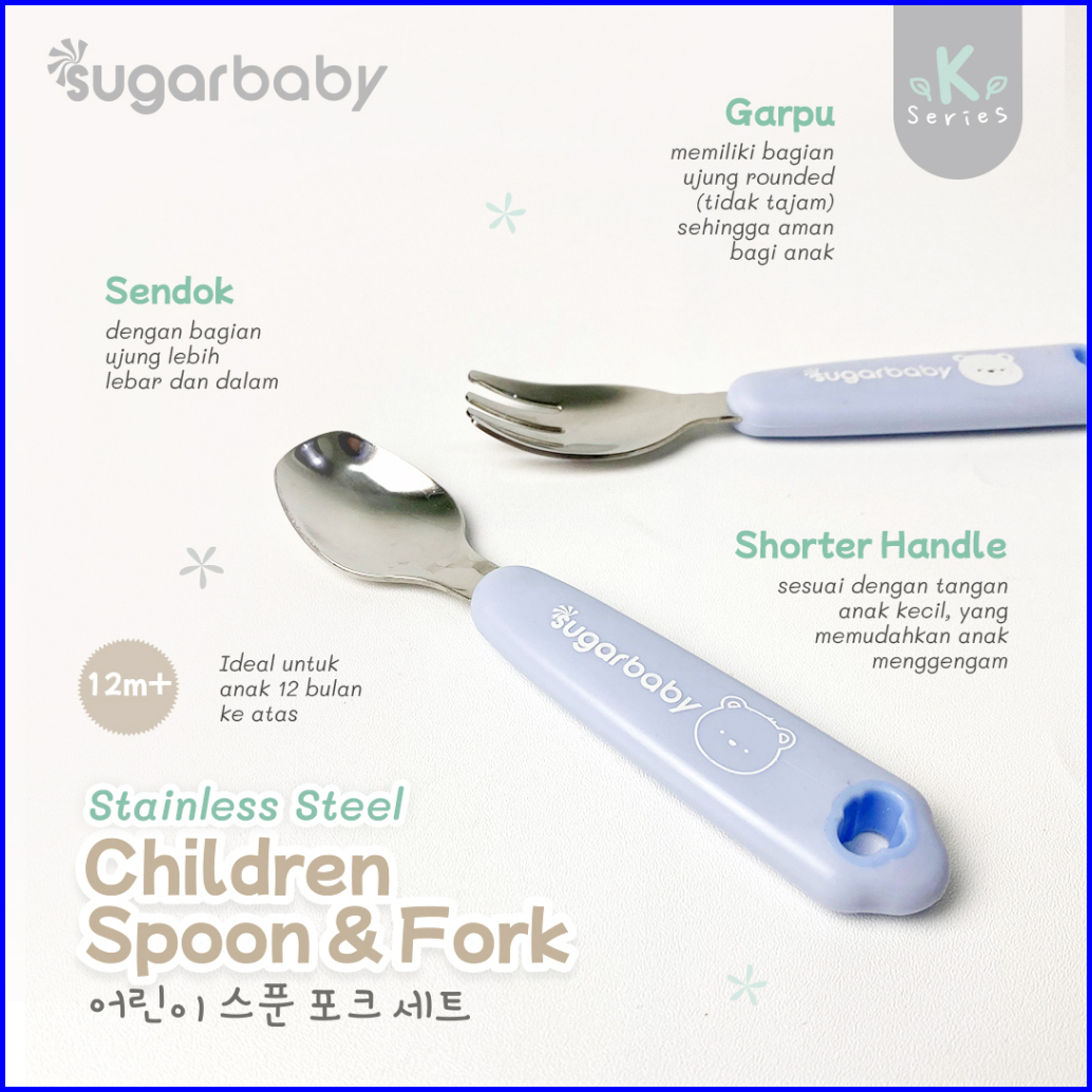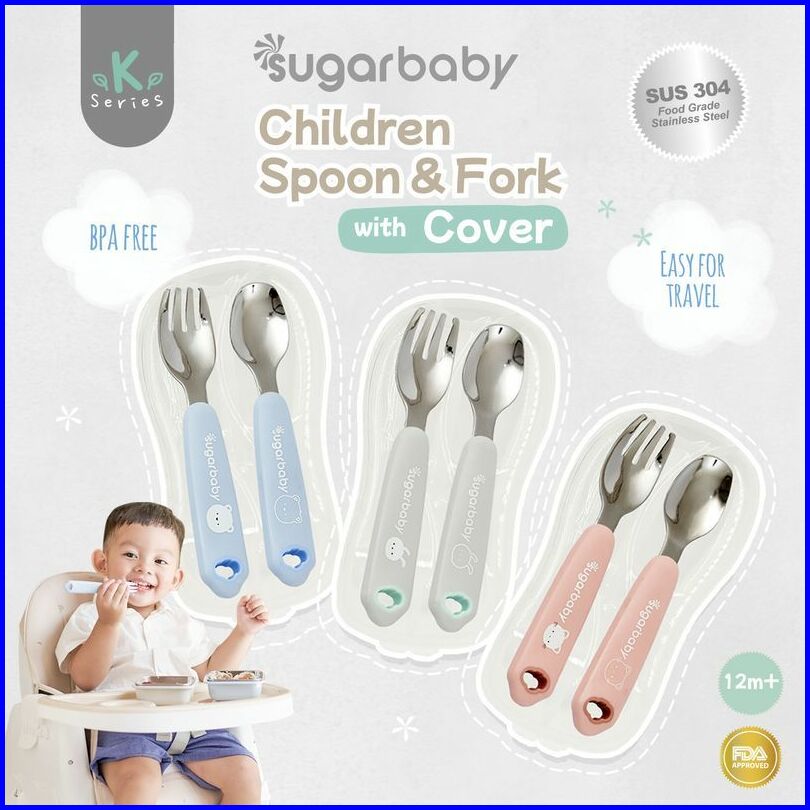 Sugar Baby Stainless Steel Children Spoon Fork With Cover Sendok Garpu Stainless Sugarbaby Dengan Penutup Case