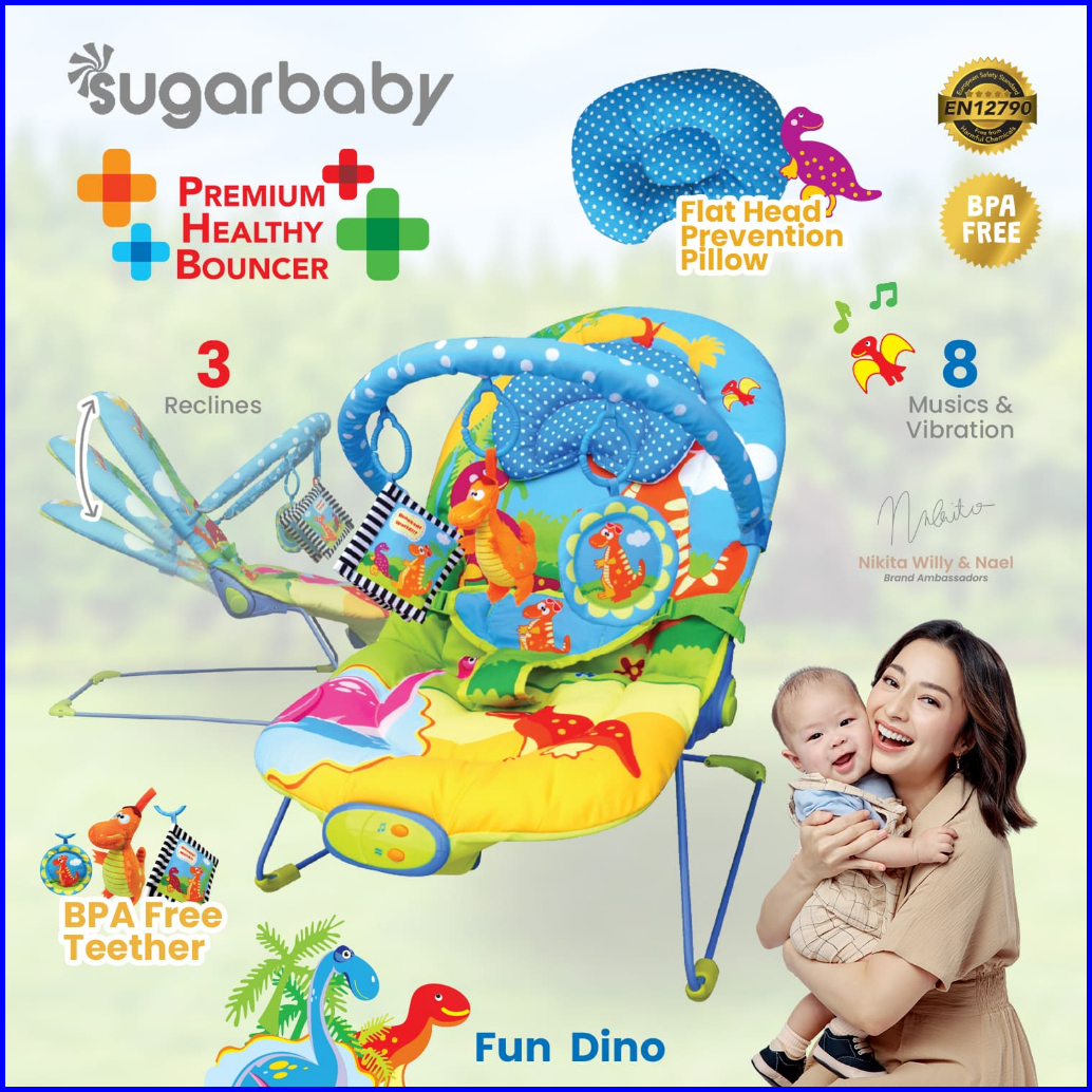 Sugar Baby Premium Healthy Bouncer Bayi 3 Recline - Fun Dino