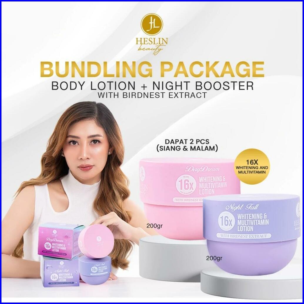 Heslin Beauty - Bundling Package 16x Whitening And Multivitamin Night Booster Day Lotion With Birdnest Extract 200 Gr