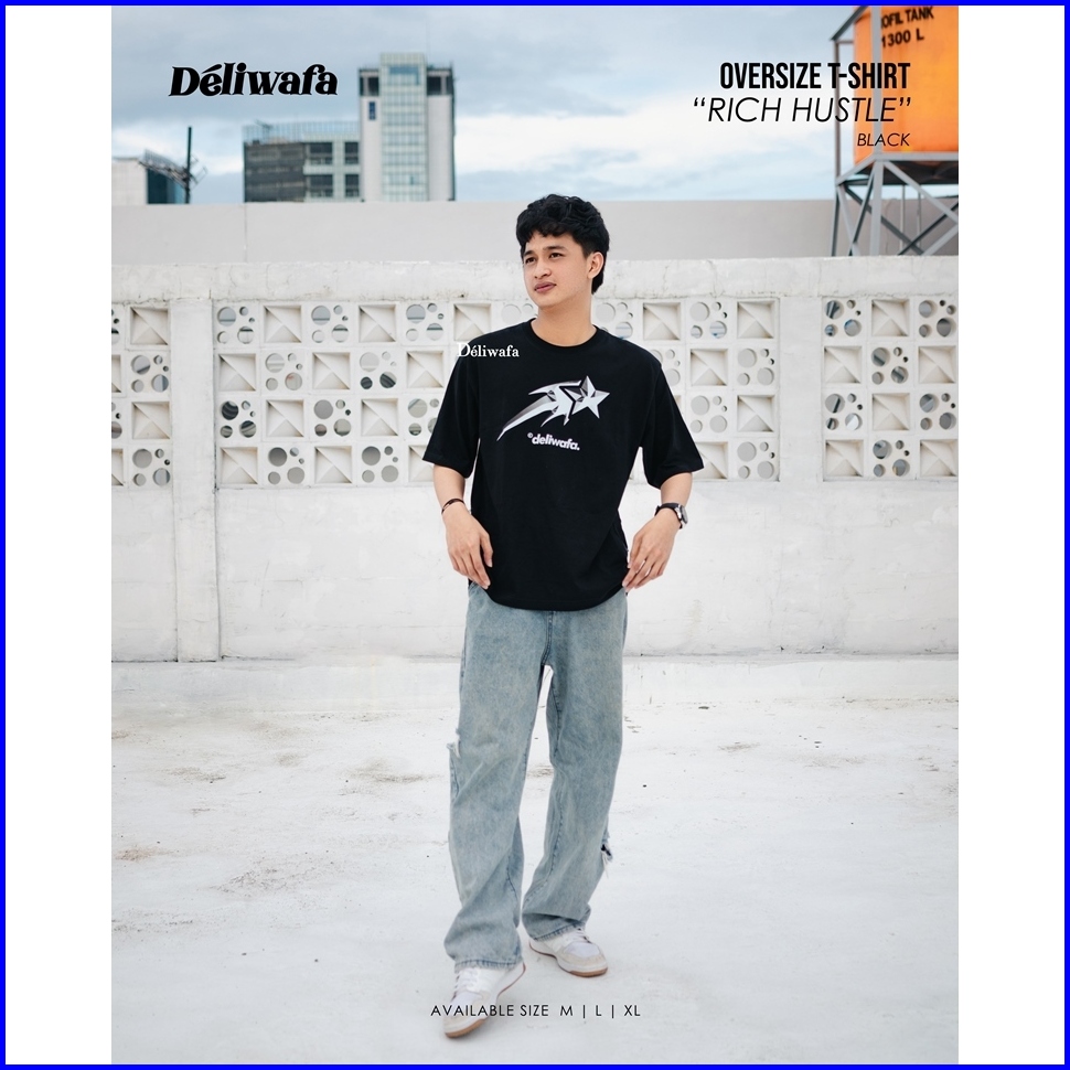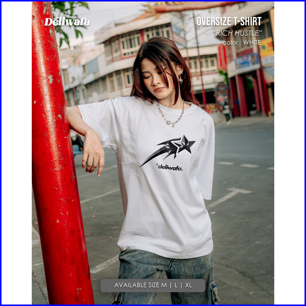 Deliwafa - Rich Hustle T-shirt Oversize Kaos Lengan Pendek Baju Pria Wanita