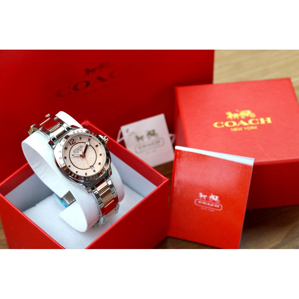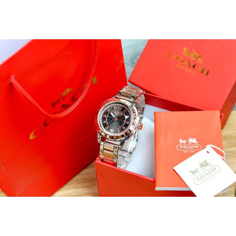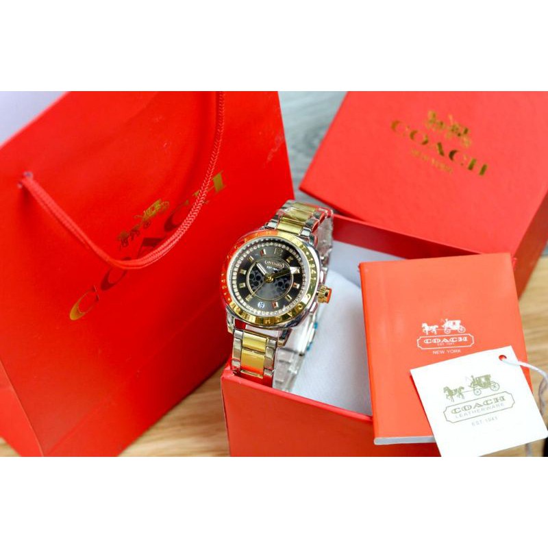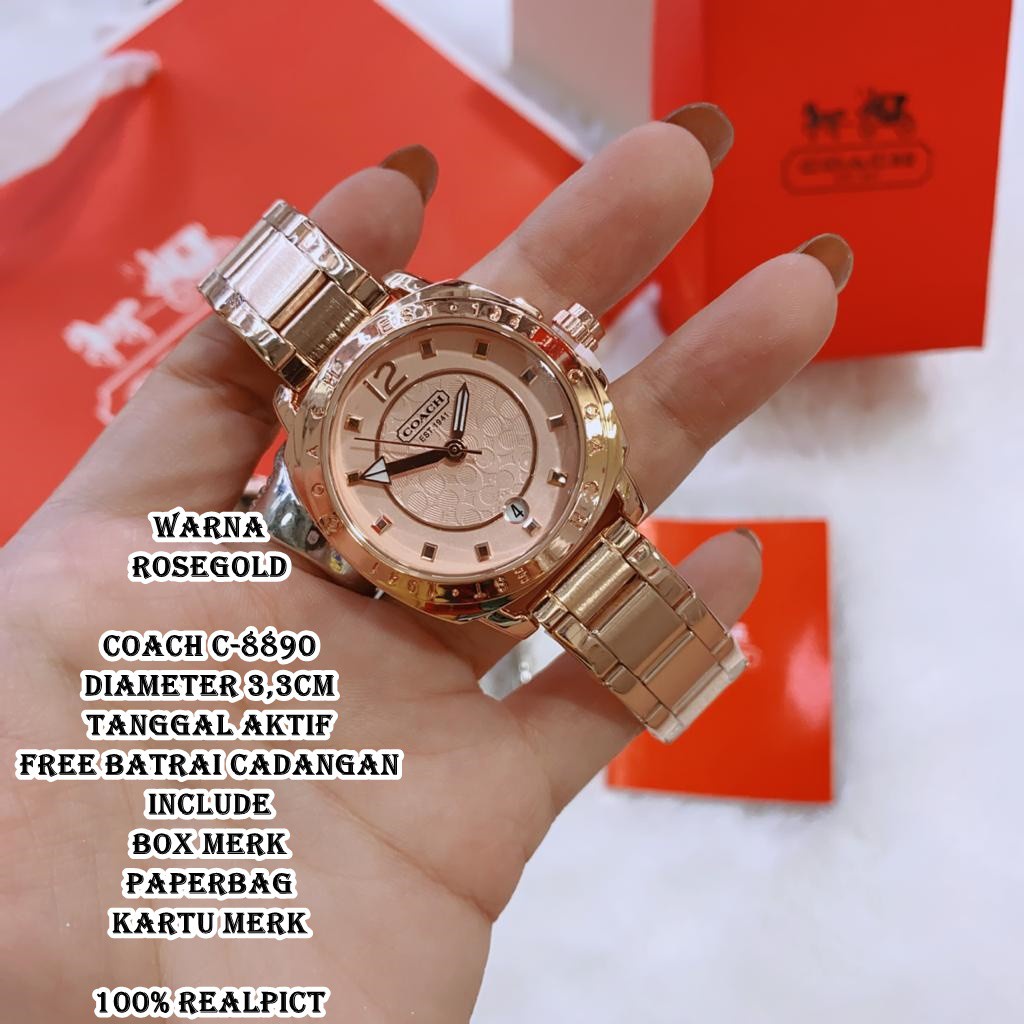 Paket Kado - Jam Tangan Fashion Coach Tanggal Aktif Model Rantai Elegan Paket Box,Kartu Dan Paper Bag