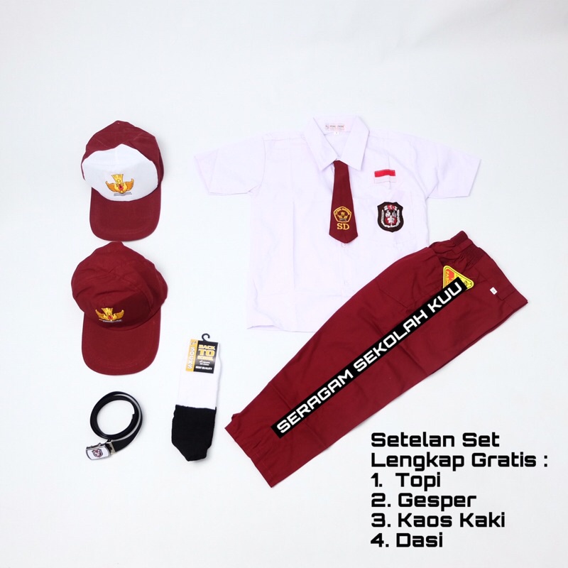 Setelan Super Lengkap Seragam Sekolah SD LAKI BAJU PENDEK CELANA PANJANG Cowok