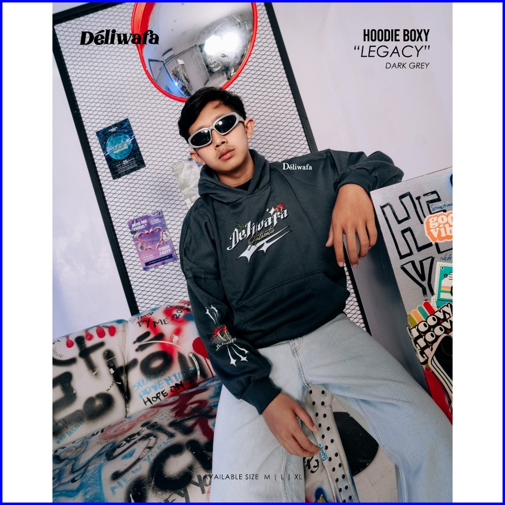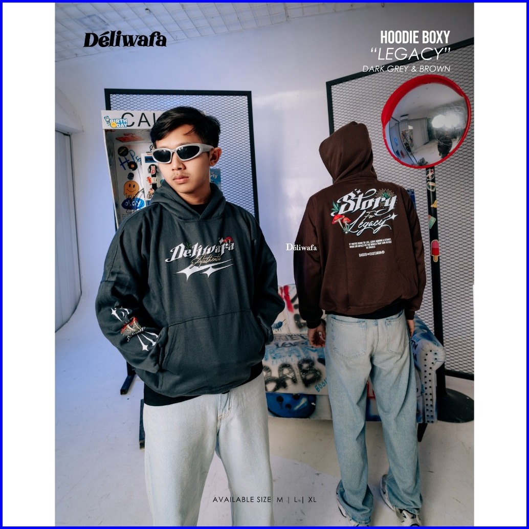 Deliwafa - Legacy Oversize Boxy Hoodie Sweatshirt Jacket Fashion Pria Wanita