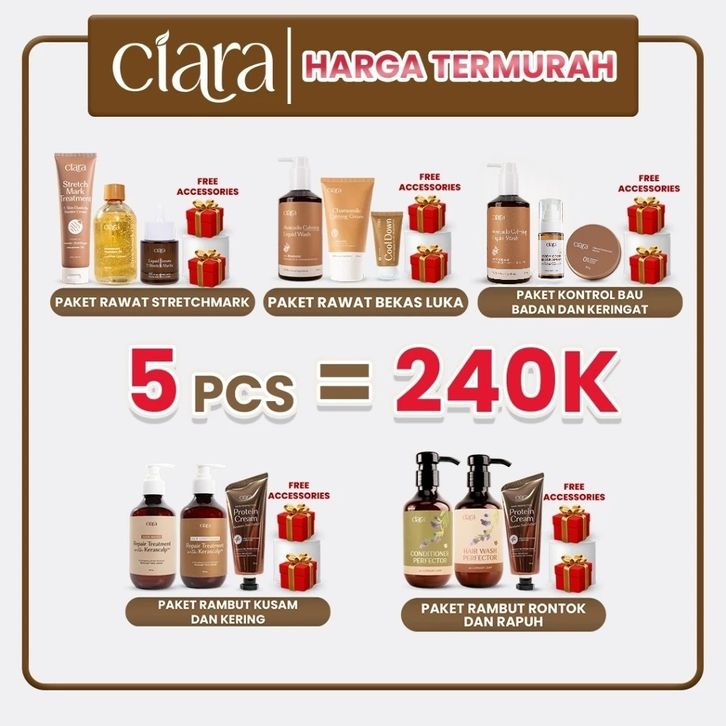 conditioner CIARA 5 Pcs Paket Perawatan Stretchmarks Oil + LQDS Serum + Booster Cream / Avocado Calming LQDS Wash + Cha