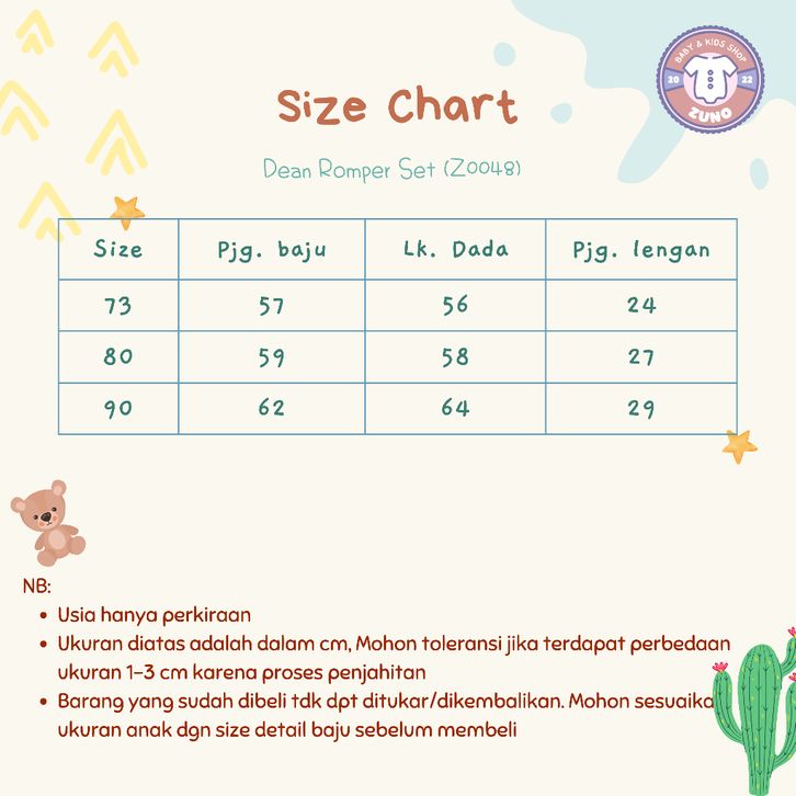 Z0048 0-2thn | ZUNO KIDS | Dean Romper Set | Baju pakaian setelan bayi anak toddler cowok lucu unik premium impor impor
