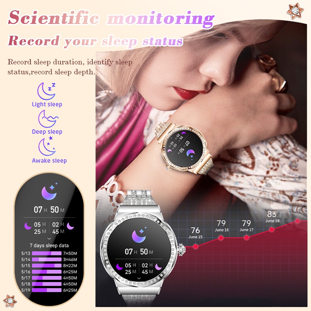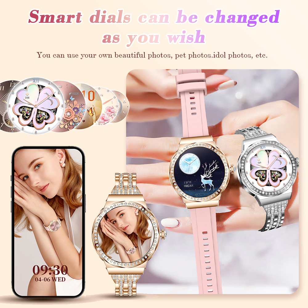 Aolon Venus Smartwatch Diamond Amoled Display Custom Wallpaper 24/7 Health Monitoring Female Menstrual Cycle
