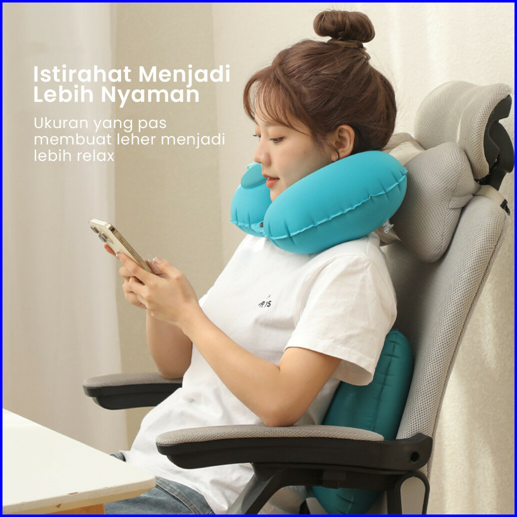 Xin Yue Bantal Leher Angin Pompa Otomatis - Bantal Leher Auto Pompa Traveling Inflatable Travel Neck Pillow U-shaped - B