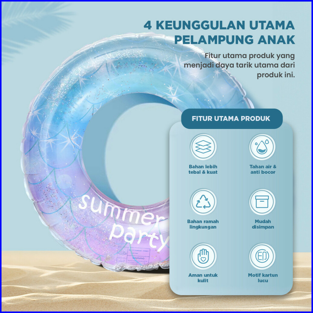 Xin Yue Pelampung Ban Renang Anak - Dewasa Motif Sirip Ikan Glitter Bahan Pvc Premium Swim Ring