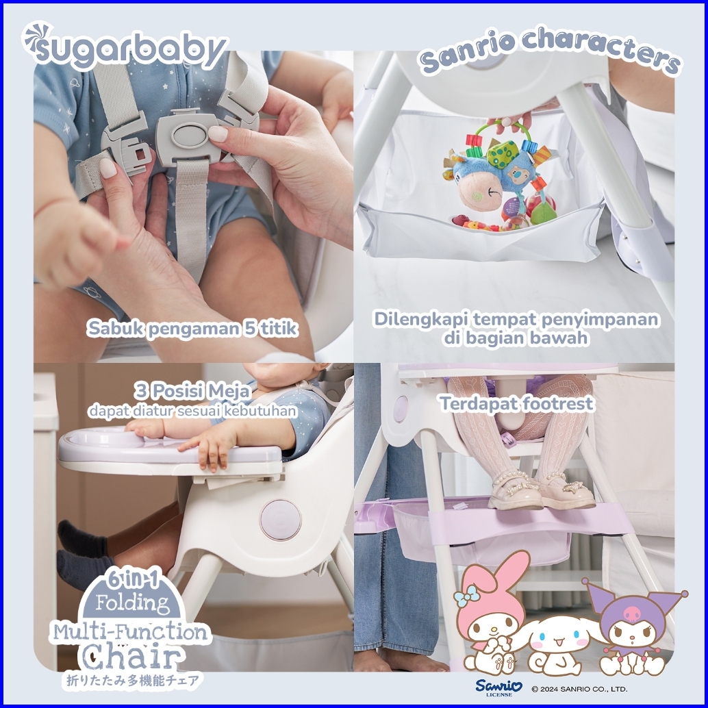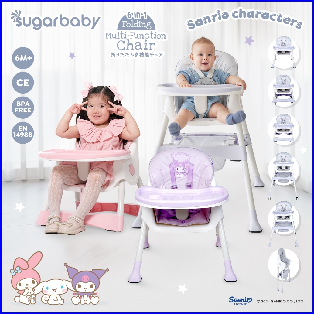 Sugar Baby 6-in-1 Folding Multi-function Chair Sanrio Collection Kursi Bayi Kursi Anak Kursi Makan Anak Kursi Mpasi Baby