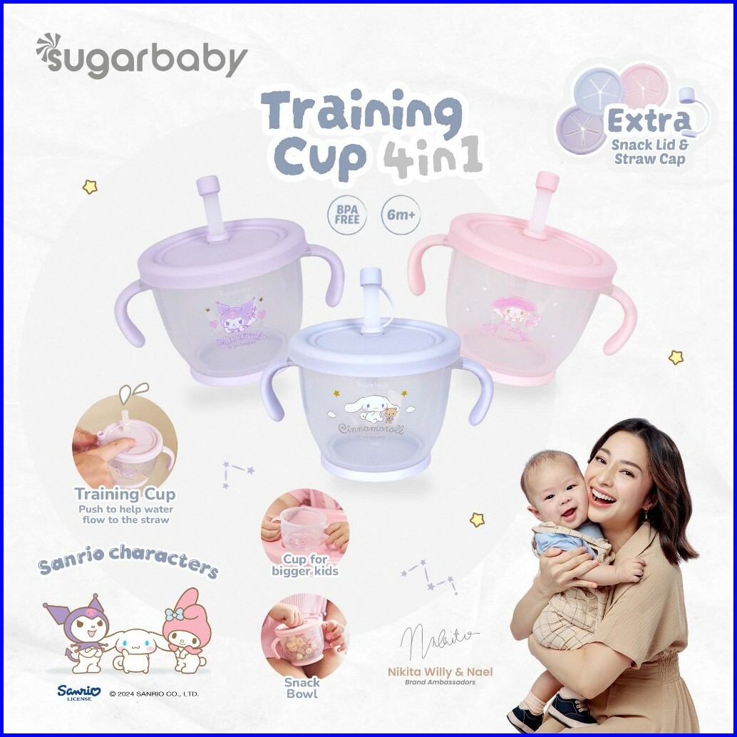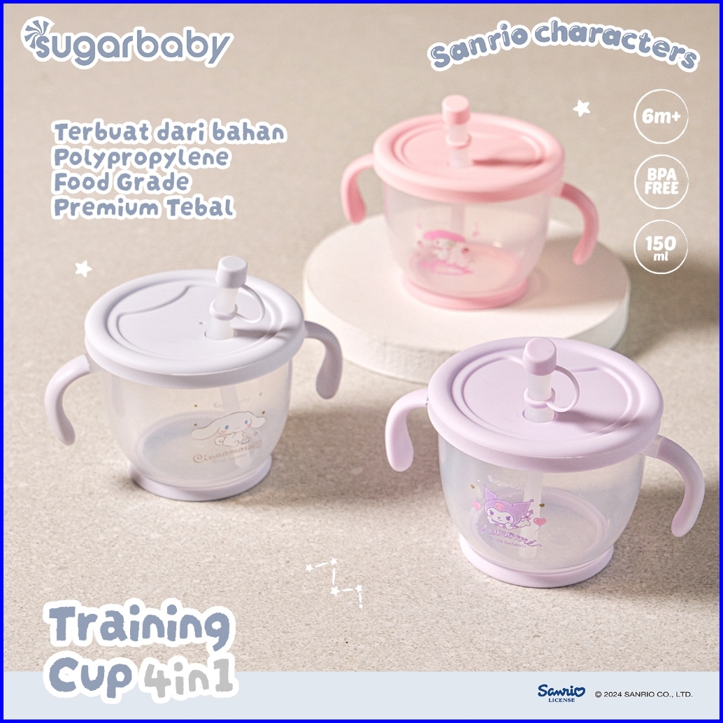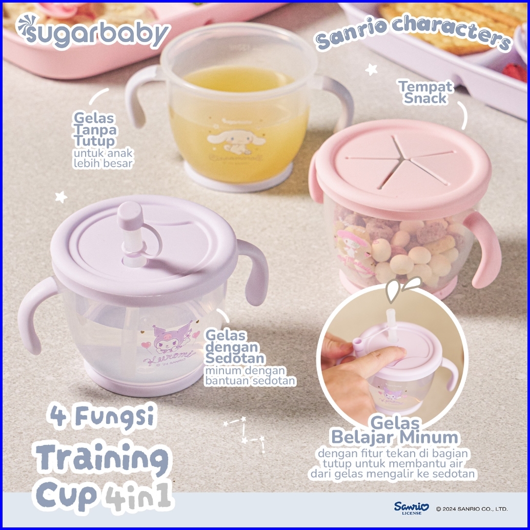 Sugarbaby Training Cup 4in1 Sanrio Collection Gelas Anak Bpa Free Cangkir Bayi Gelas Mpasi Anti Bocor Dan Tumpah Straw T