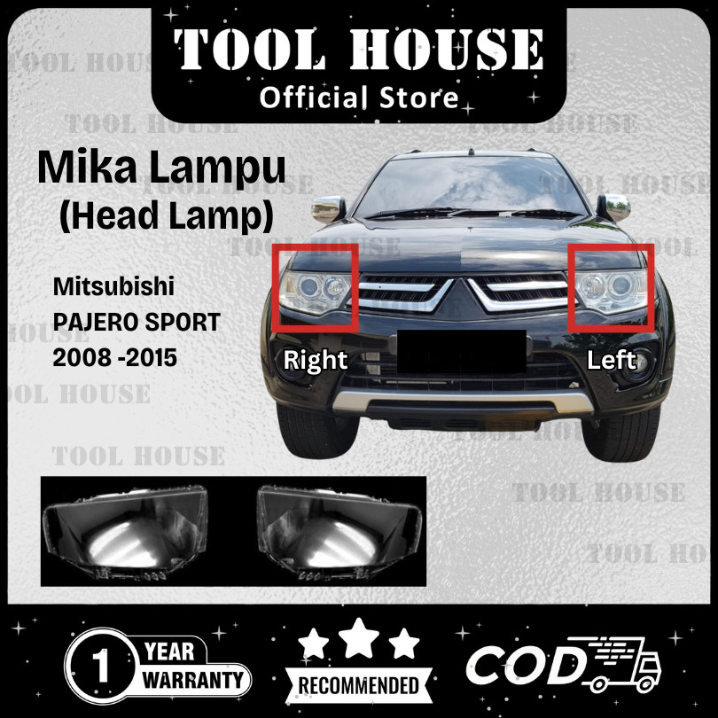 Tool House [Garansi Toko 1 Tahun] Mika Head Lamp For Mitsubishi Pajero Sport mika lampu pajero Sport (Head Lamp) 2008-2015 2013-2015 2008/2009/2010/2011/2012/2015 Cover Lampu Barang Baru THS