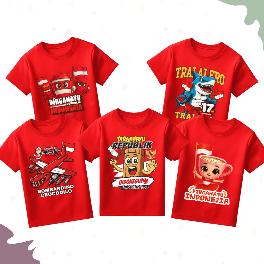 Baju Kaos Anak Kemerdekaan Indonesia 17 Agustus Karakter Anomali - Kaos Kemerdekaan Tung Tung Sahur