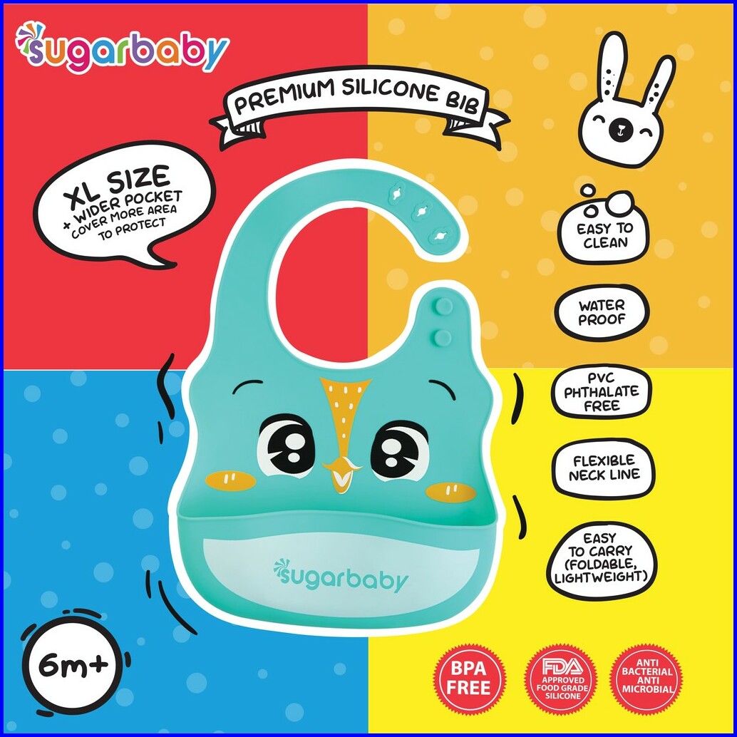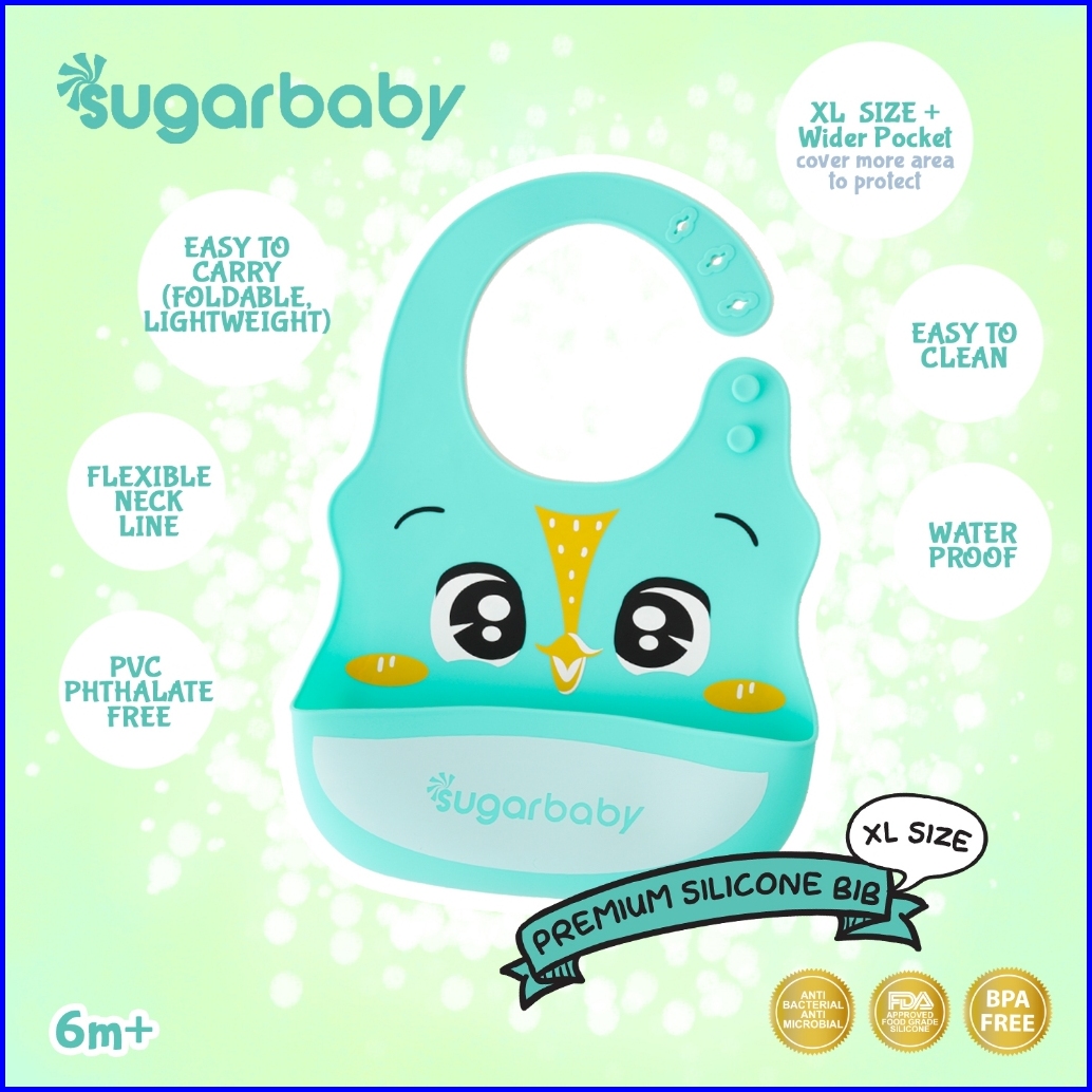 Sugar Baby Premium Silicone Bib Xl Size - Green Bird