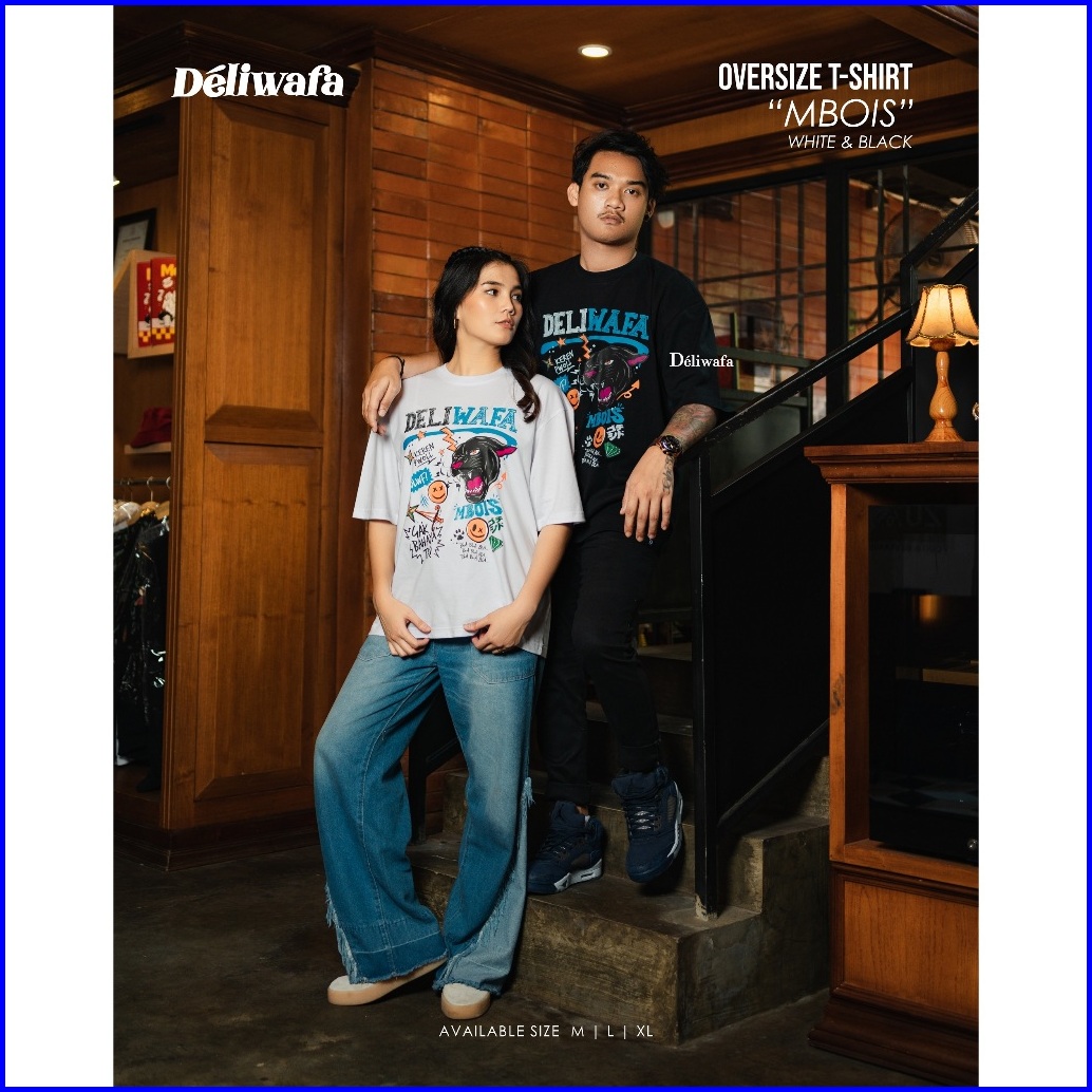 Deliwafa - Mbois T-shirt Oversize Kaos Lengan Pendek Baju Pria Wanita