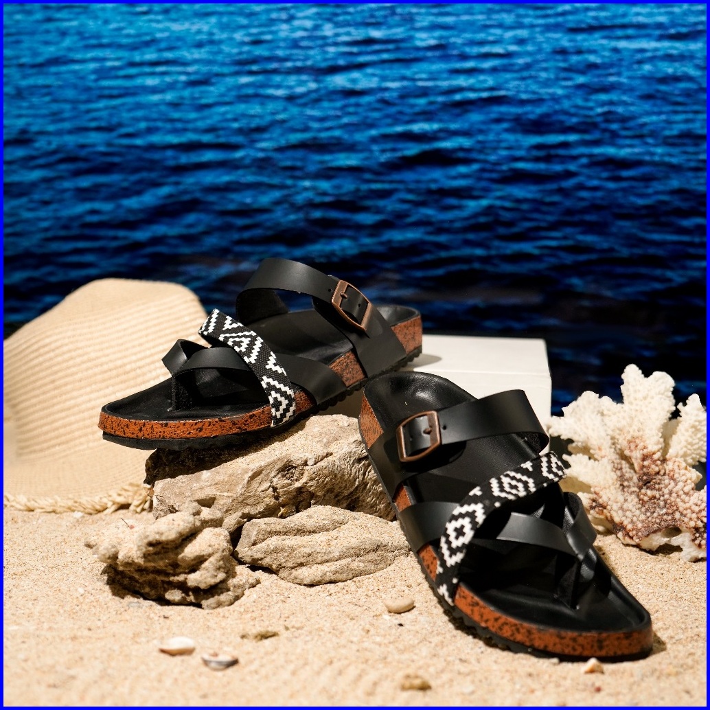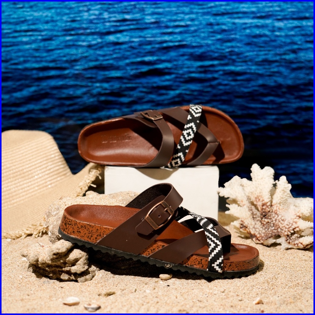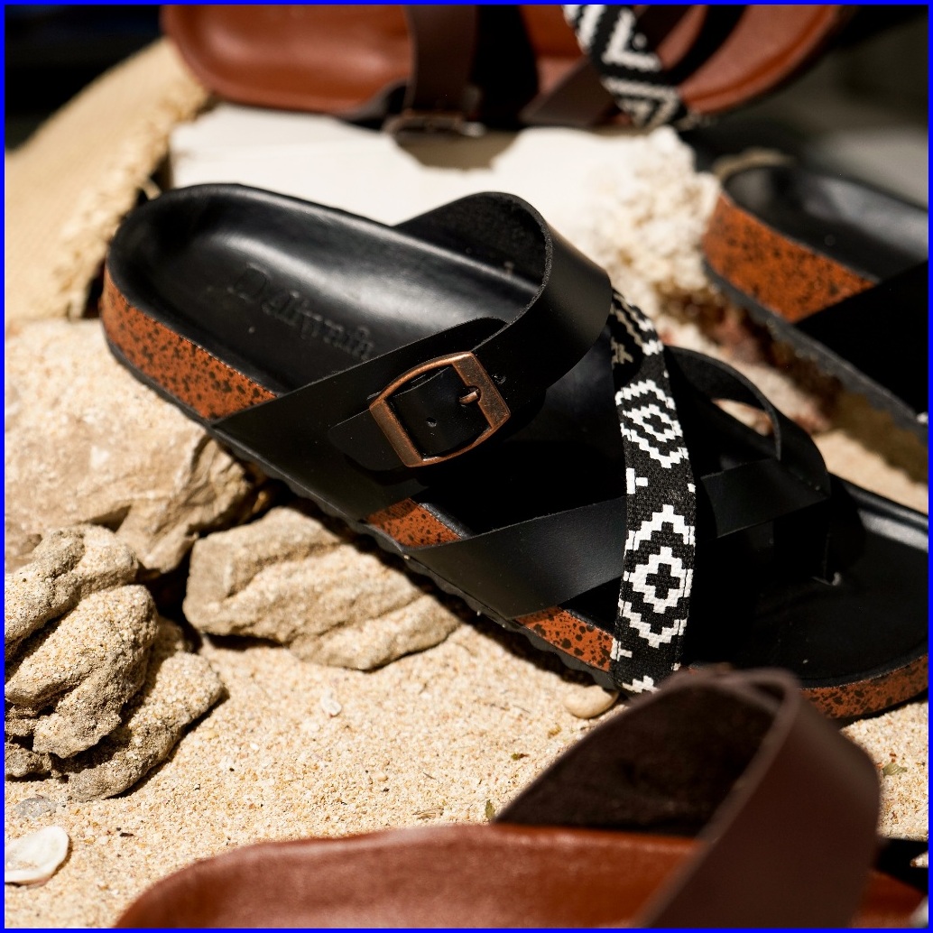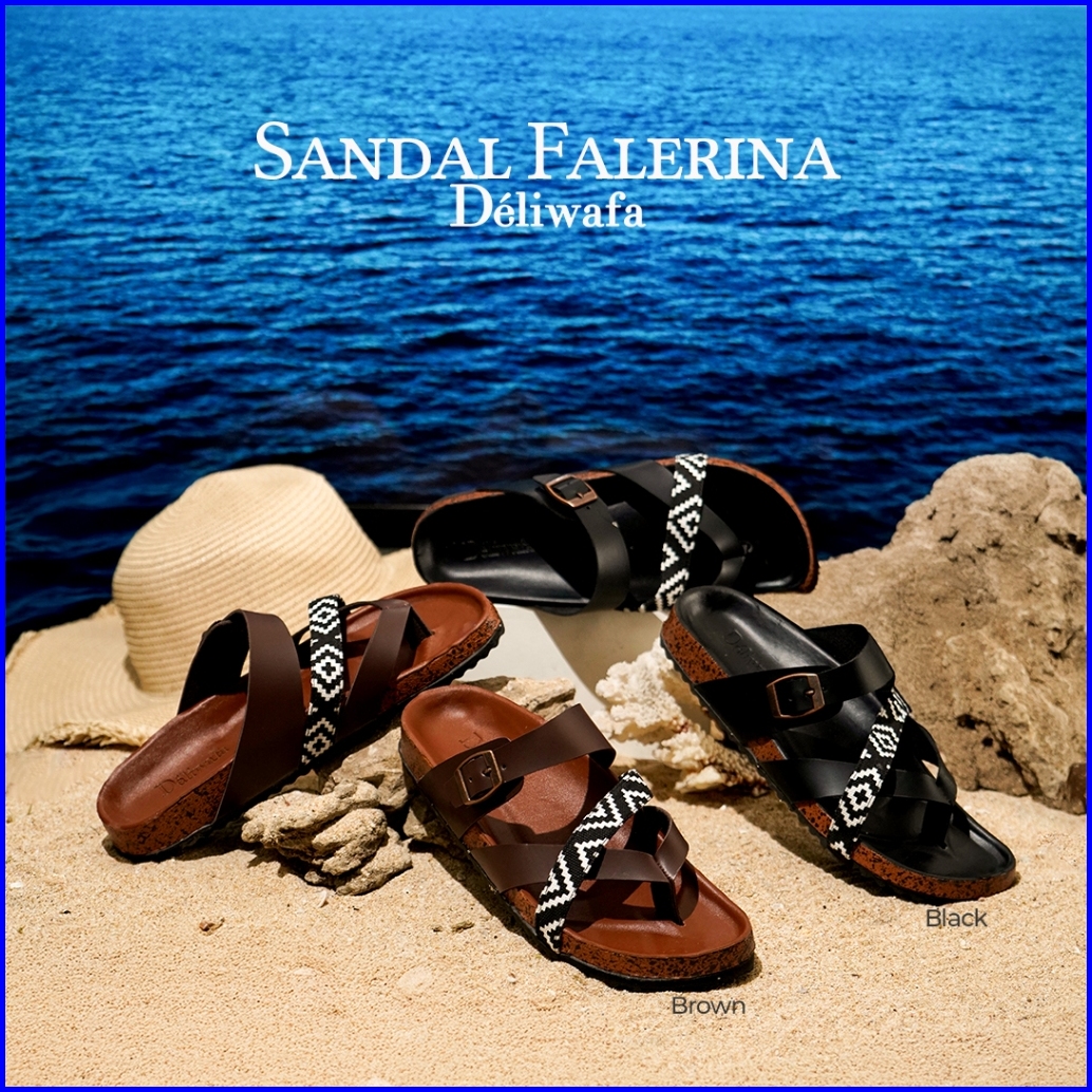 Deliwafa Falerina Comby Sandal Fashion Wanita Open Toe Flat